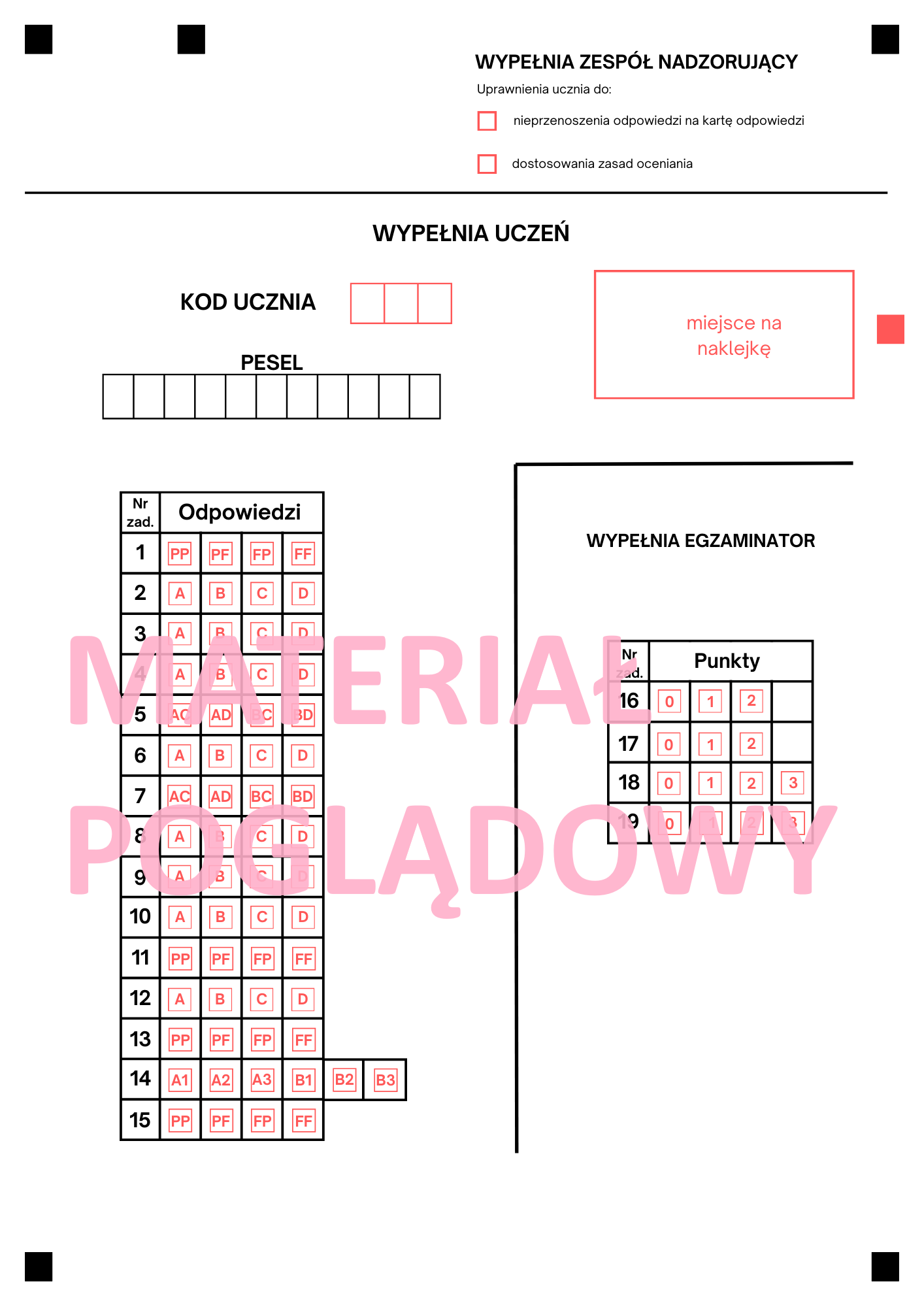 Materiał zawiera kartę odpowiedzi egzaminu ósmoklasisty z matematyki z maja 2023.