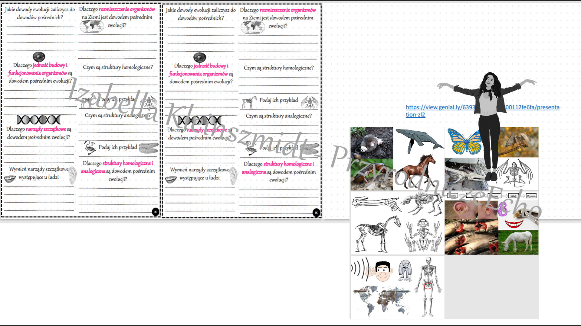 Zapraszam do zakupu karty pracy „Źródła wiedzy o ewolucji – dowody pośrednie” dostosowanej do niekomercyjnej prezentacji – pomysłu na lekcję – wykonanej w genially w wersji edu pro. Link do lekcji –