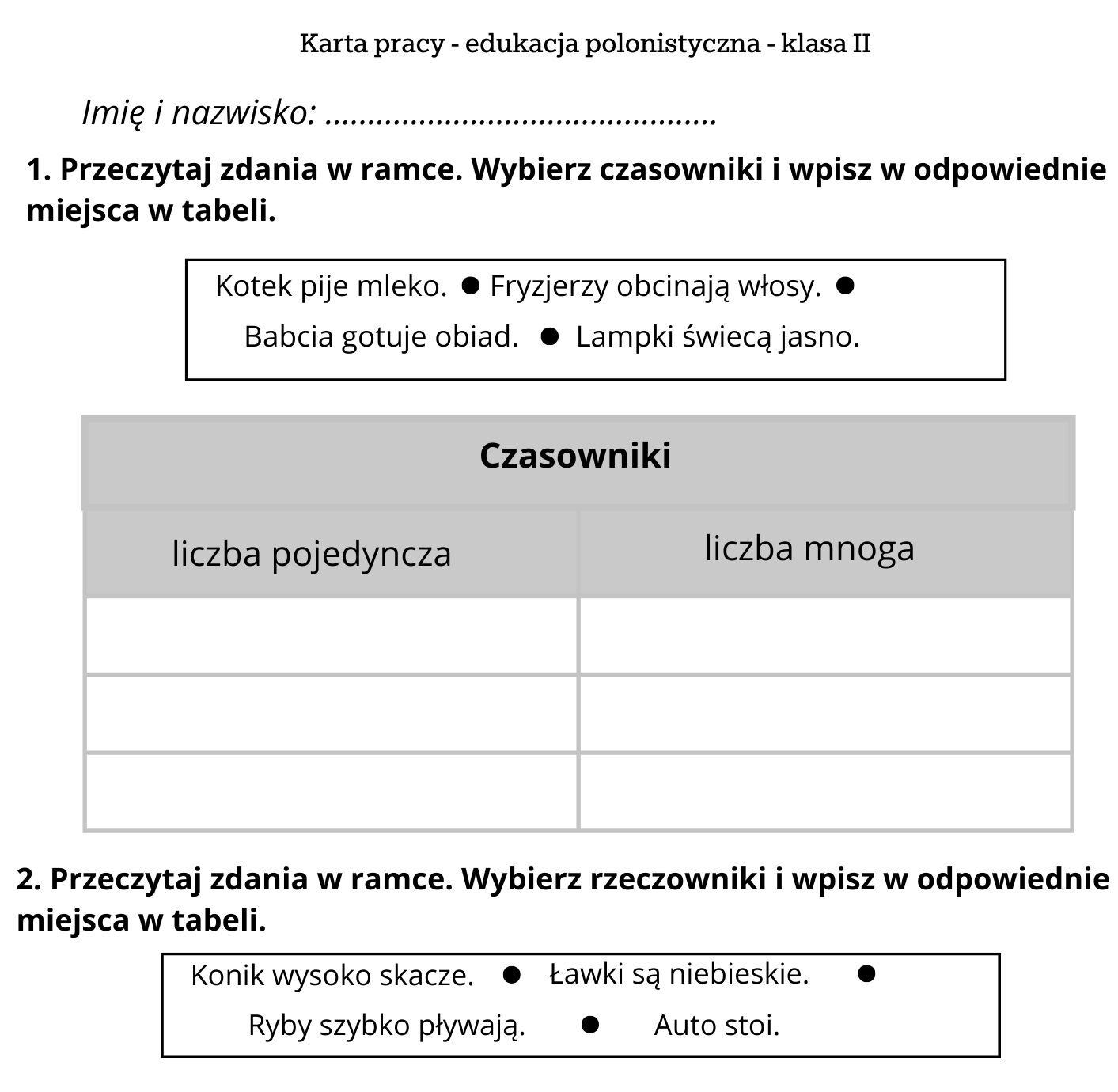 Do pobrania karta pracy z edukacji polonistycznej dla klasy II.