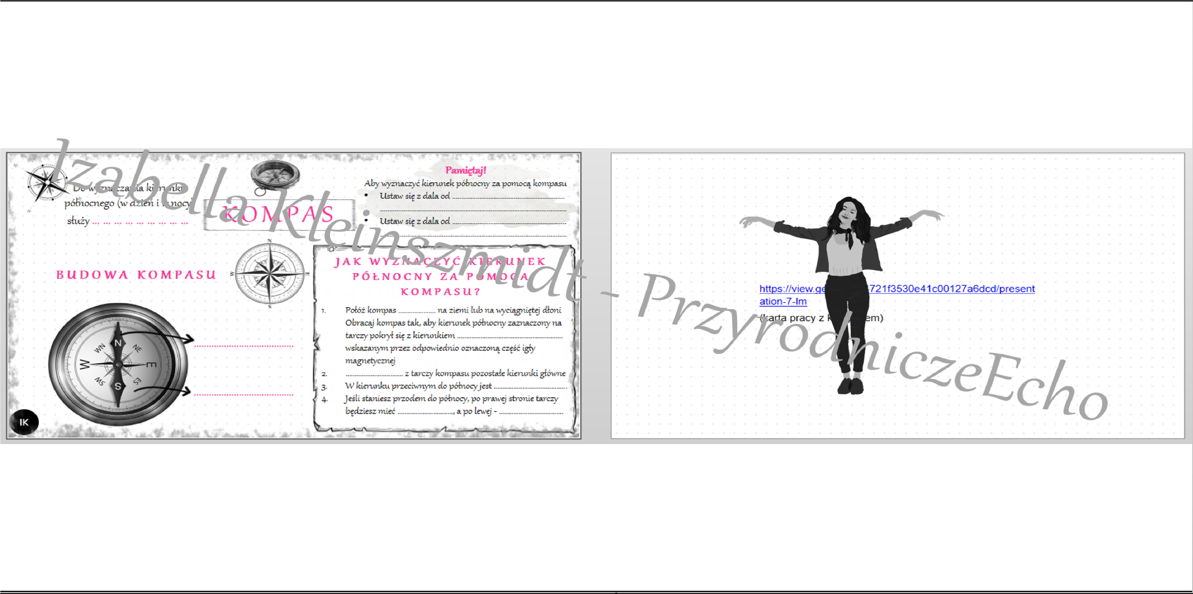 Karta pracy „. Jak działa kompas?” + gratisowy link do lekcji multimedialnej (pomysłu na lekcję) niekomercyjnej wykonanej w genial.ly do indywidualnego pobrania i użycia do celów niekomercyjnych. Przyroda 4, dział I „Poznajemy warsztat przyrodnika”