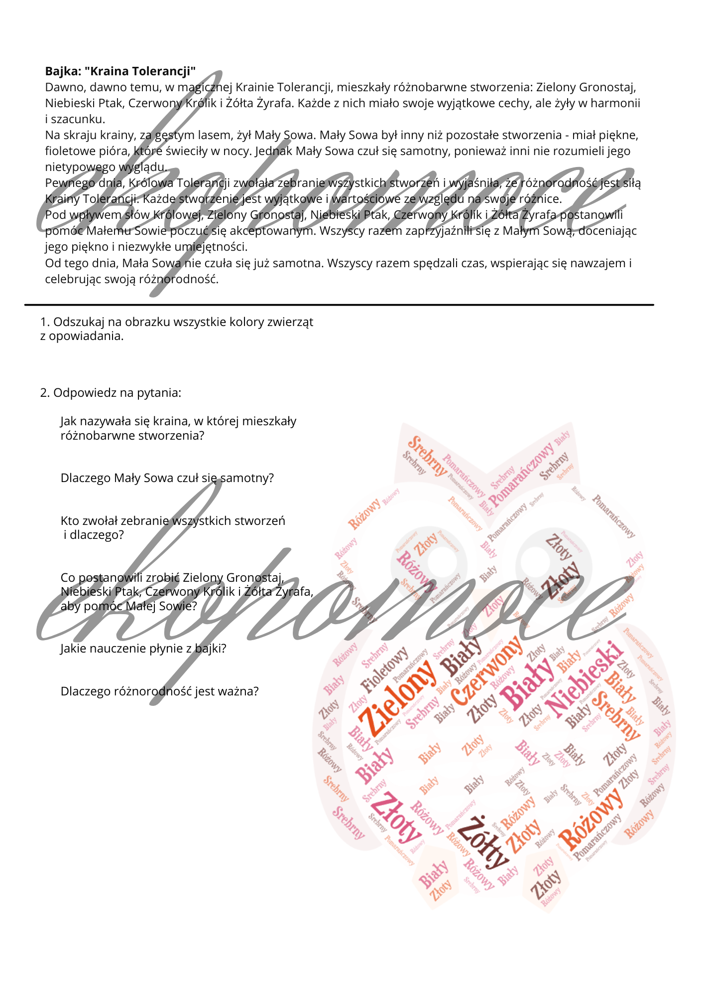 Karta pracy na temat tolerancji: https://zlotynauczyciel.pl/downloads/karta-pracy-na-godzine-wychowawcza-na-temat-tolerancji-pomysl-na-godzine-wychowawcza/