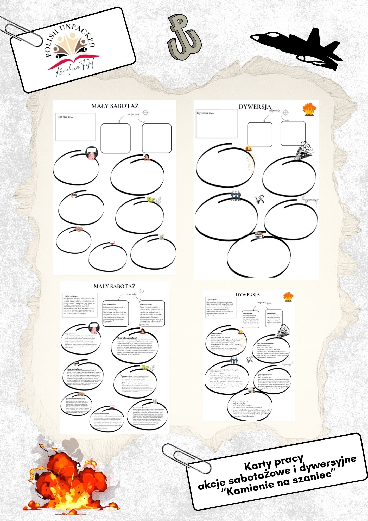 Karta pracy – notatka graficzna: Akcje sabotażowe i dywersyjne z lektury „Kamienie na szaniec”