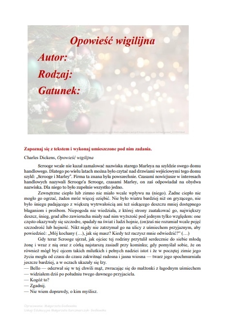 Arkusz egzaminacyjny "Opowieść wigilijna"