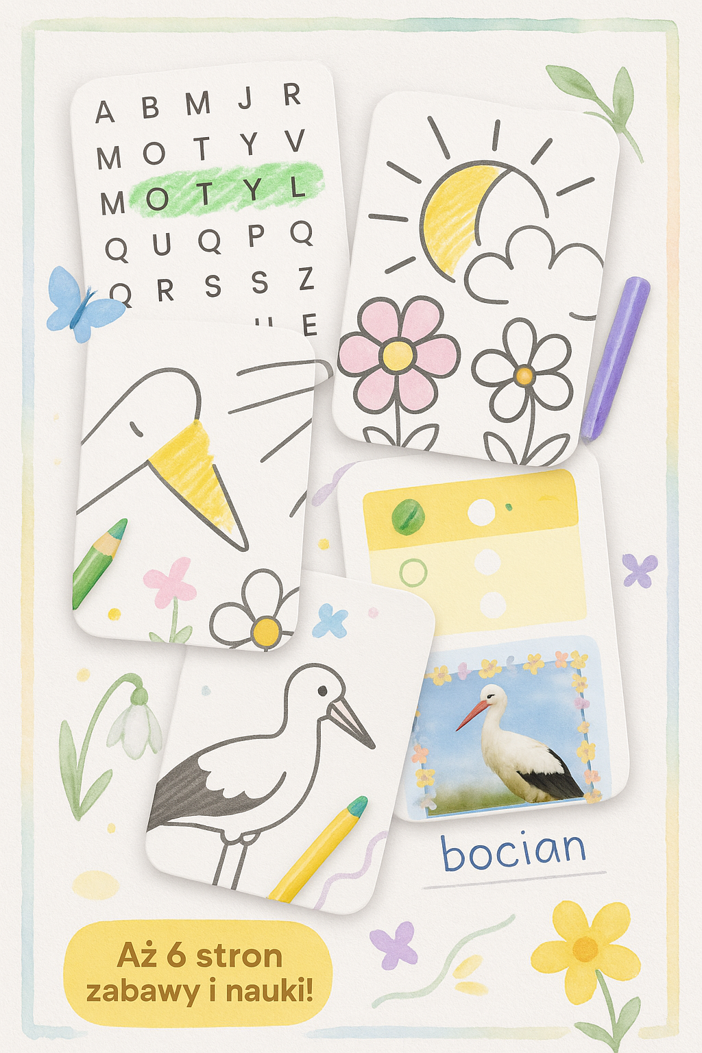 ✨ Aż 6 stron pełnych kolorowych zadań i angażujących ilustracji!