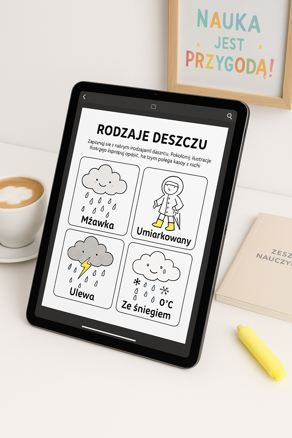 Karta pracy „Rodzaje deszczu” to doskonały sposób, by pogoda stała się tematem do zabawy, nauki i obserwacji przyrody. Wprowadź dzieci w świat chmur, kropel i zjawisk atmosferycznych – niech każde spojrzenie za okno stanie się inspiracją! 🌧️🌤️🌨️