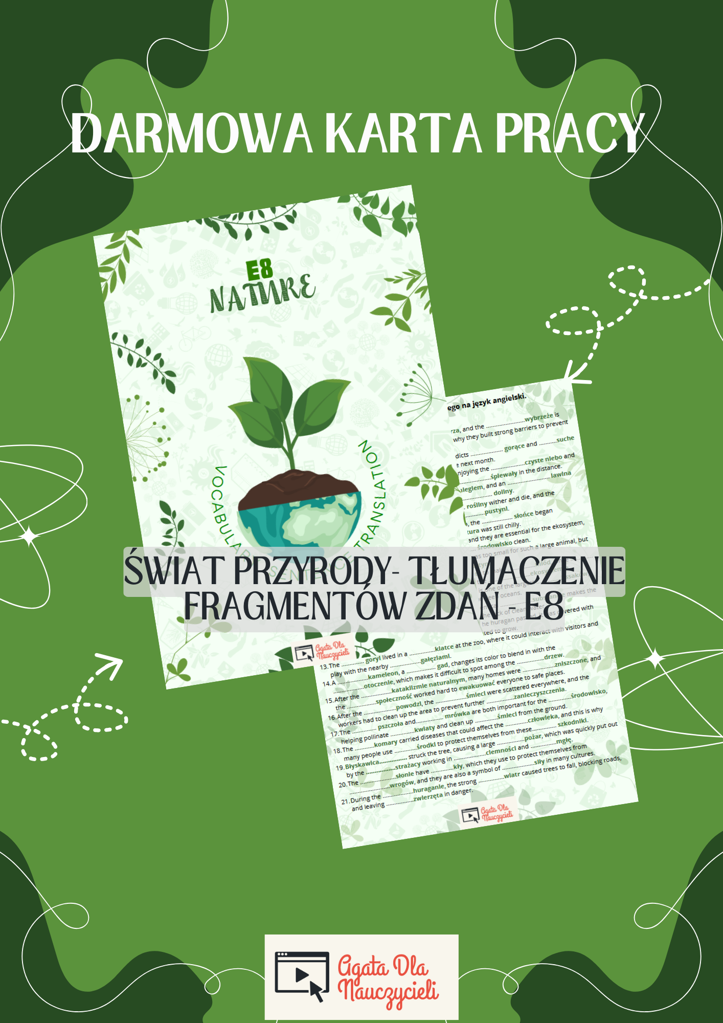 Materiał powtórkowy - tłumaczenie fragmentów zdań - E8 - dział Świat Przyrody