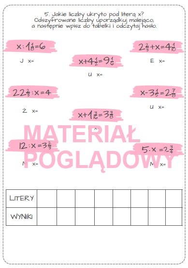 Karta pracy - ułamki zwykłe kl. 4, 5, 6