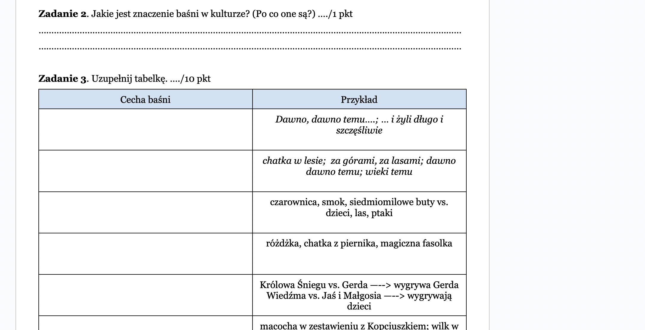 Dzięki tej kartkówce uczniowie utrwalą wiedzę o baśni, a nauczyciel zaoszczędzi czas na przygotowaniu materiałów!
