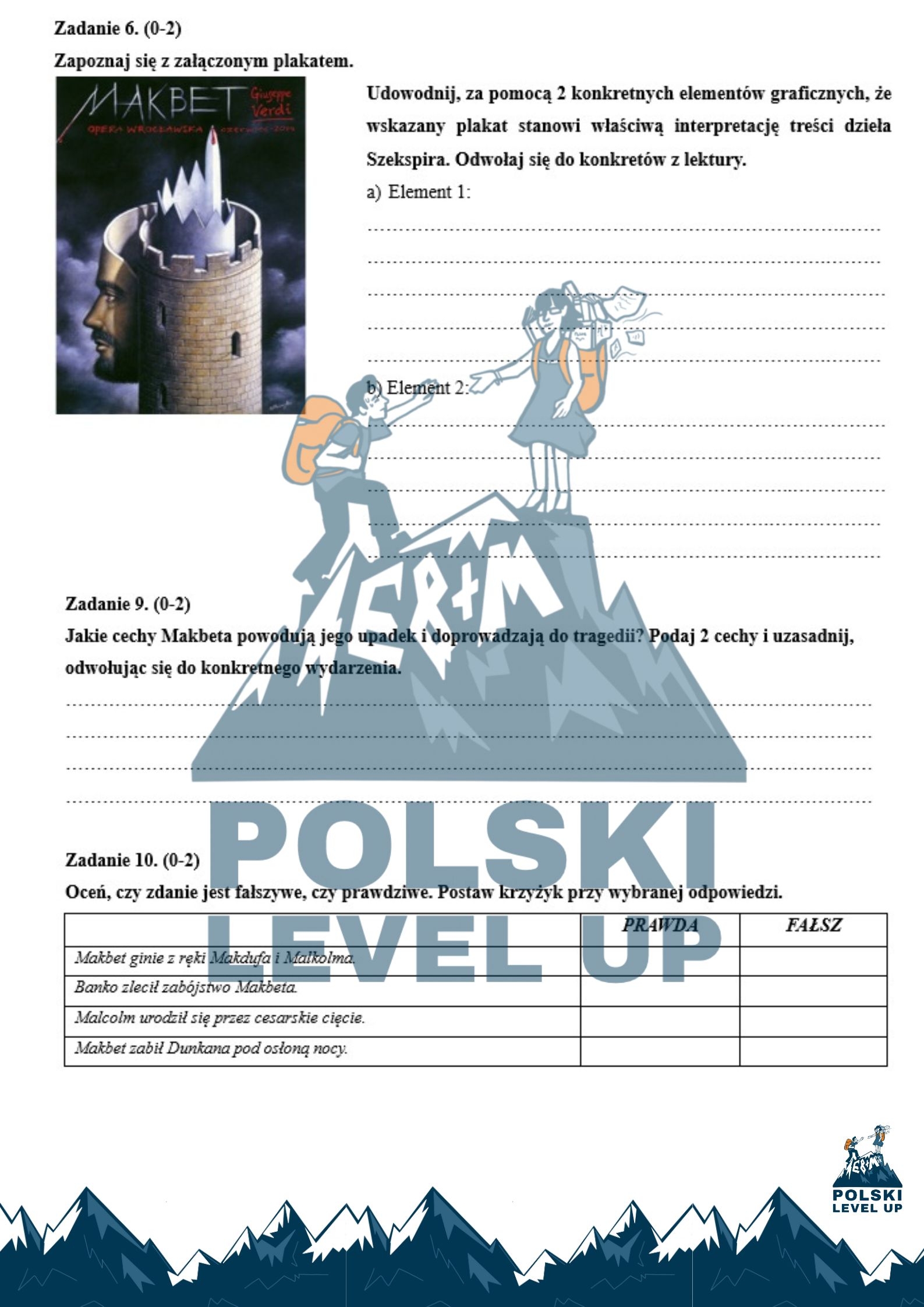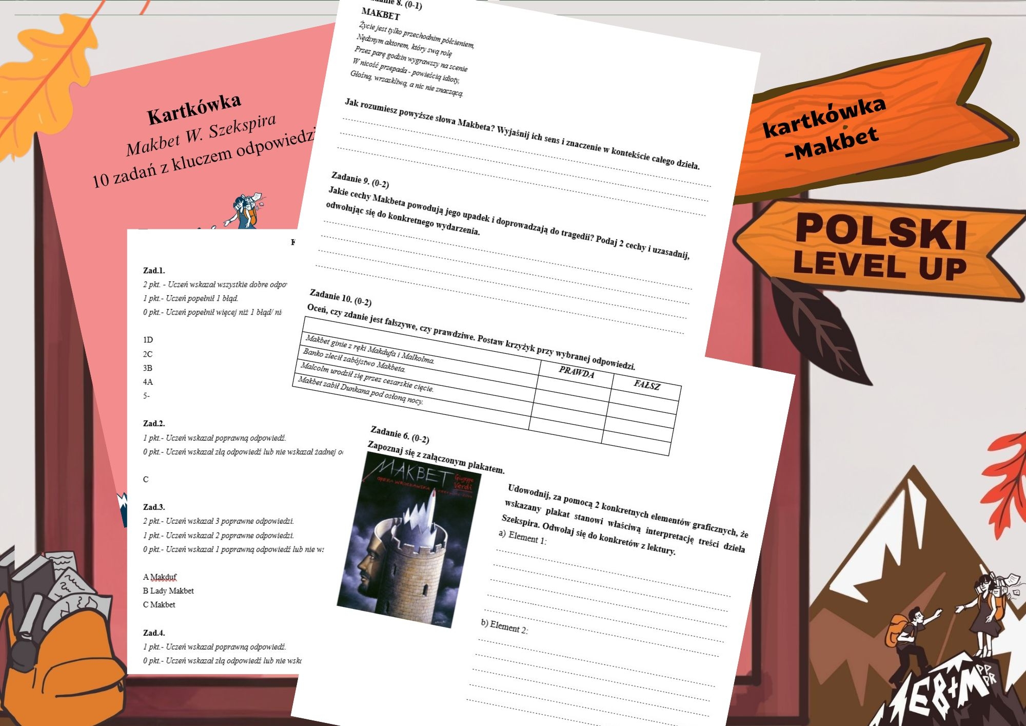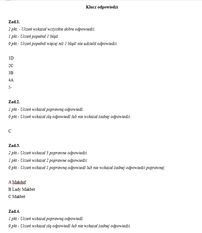 Gotowa kartkówka z lektury W. Szekspira "Makbet" + KLUCZ ODPOWIEDZI.