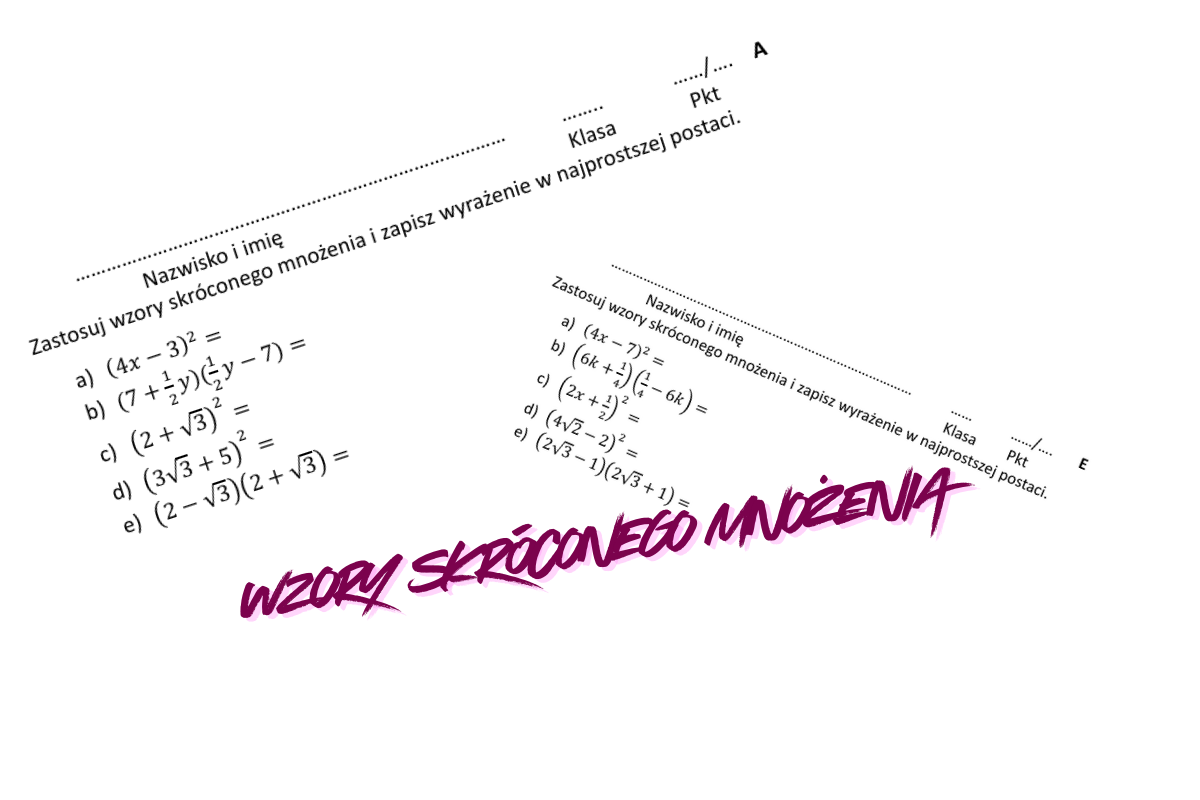 Kartkówka podstawowe wzory skróconego mnożenia (9 grup) wraz z odpowiedziami