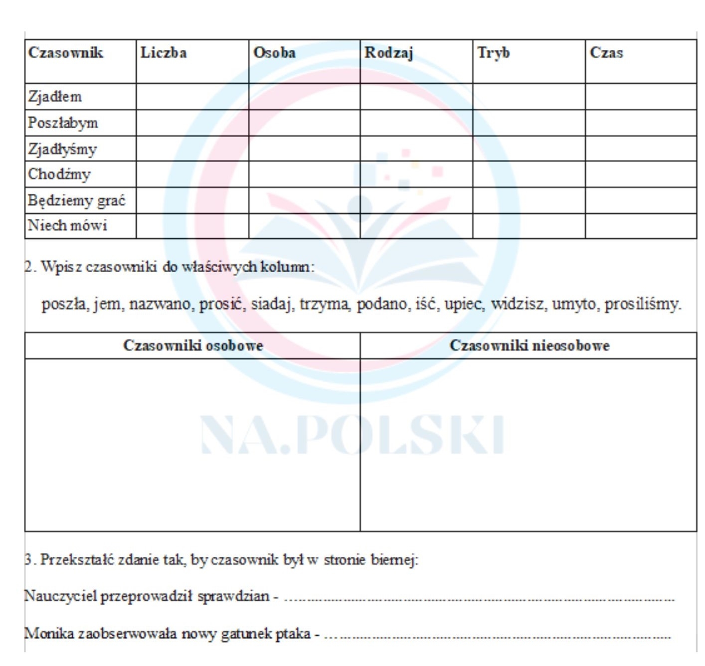 Kartkówka z czasownika - kl.6 (odmiana przez osoby, czasy, rodzaje, tryby, strony, aspekty)