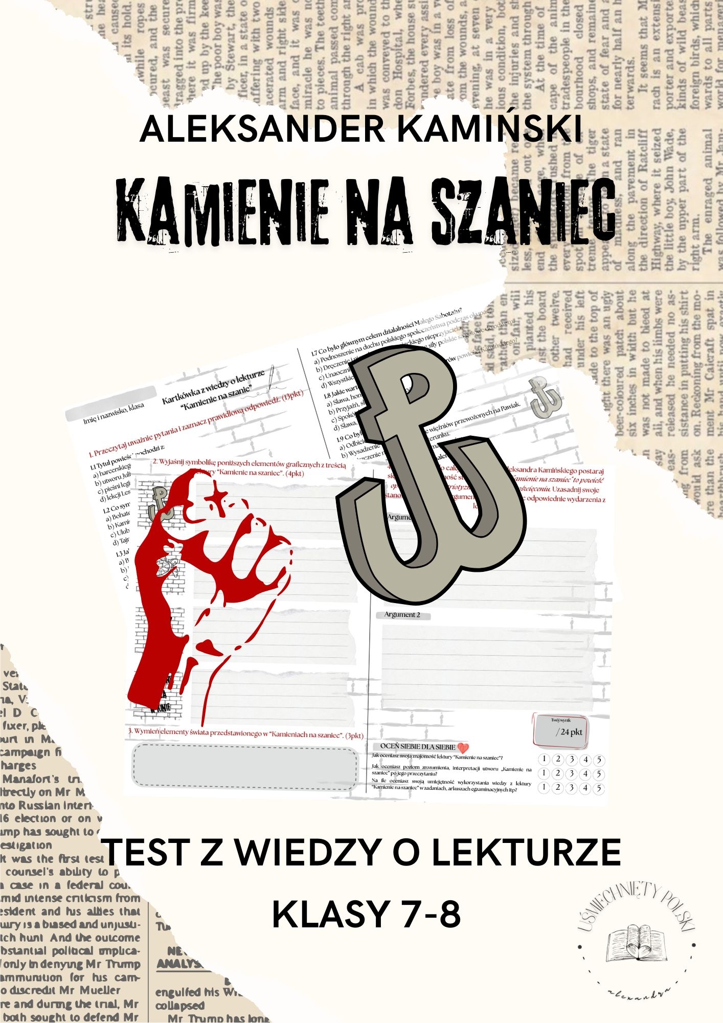 Materiał jest idealny do wykorzystania na początku cyklu lekcji omawiających utwór "Kamienie na szaniec" Aleksandra Kamińskiego. Może być wykorzystany zarówno w klasie 7, jak i 8. Zawiera pytania zamknięte oraz otwarte sprawdzające znajomość lektury oraz umiejętność jej interpretowania. Przygotowany przeze mnie sprawdzian może być również wykorzystany jako podsumowanie po omawianiu lektury. Materiał może być również świetną kartą pracy w powtórkach przed egzaminem ósmoklasisty ze względu na charakter i budowę zadań.