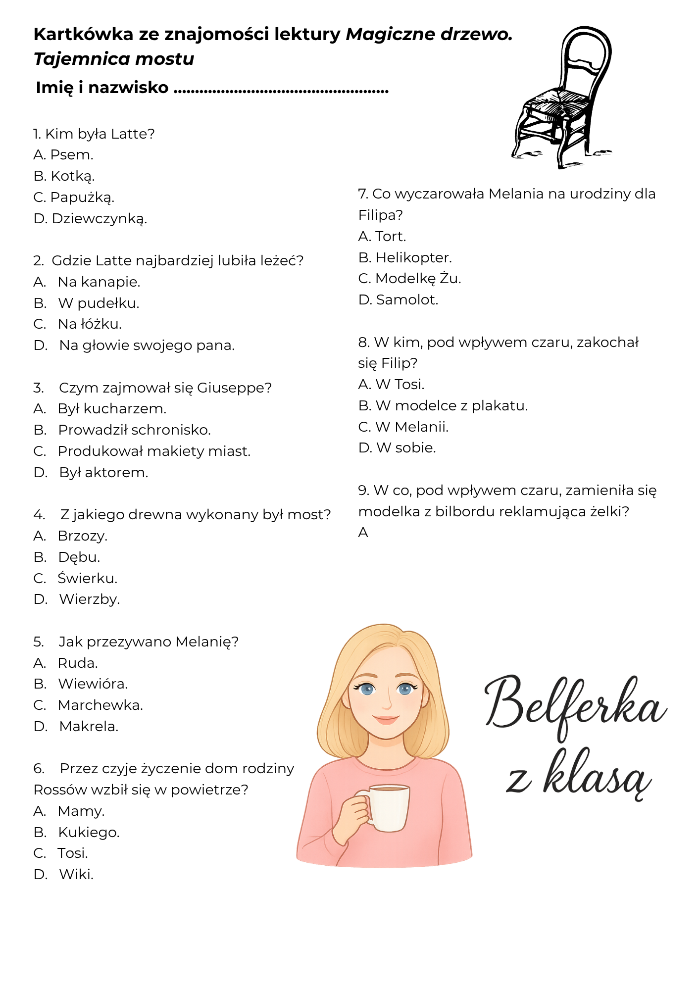 Do kartkówki dołączony jest klucz odpowiedzi, co pozwala nauczycielowi na szybkie i wygodne sprawdzenie pracy uczniów.