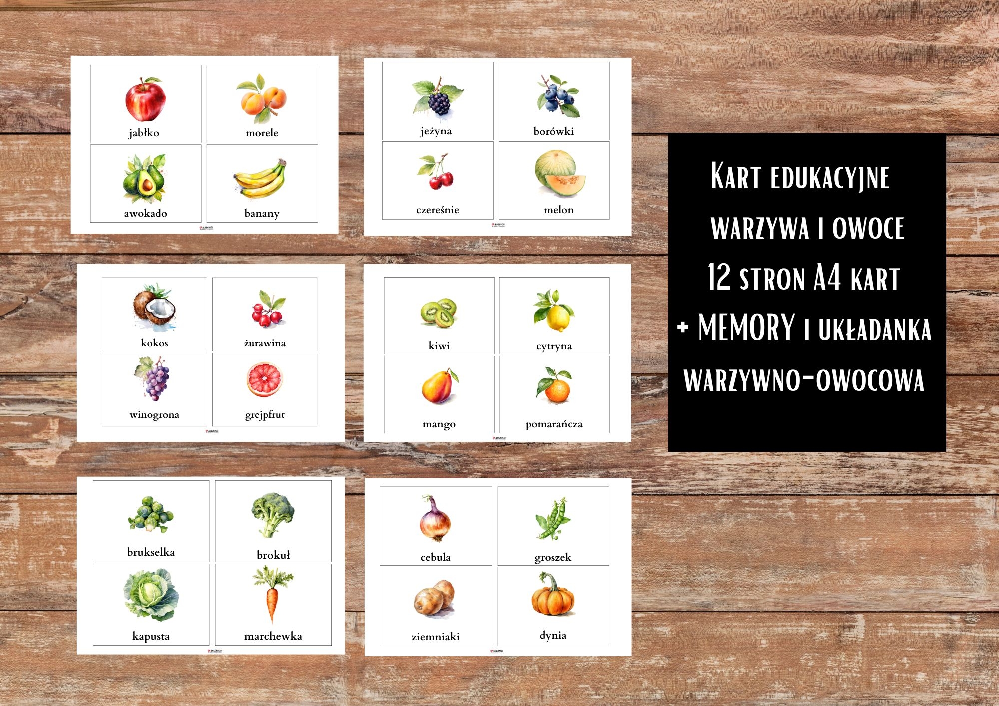 Karty edukacyjne warzywa i owoce 12 stron a4 dodatkowo memory i układanka warzywa i owoce