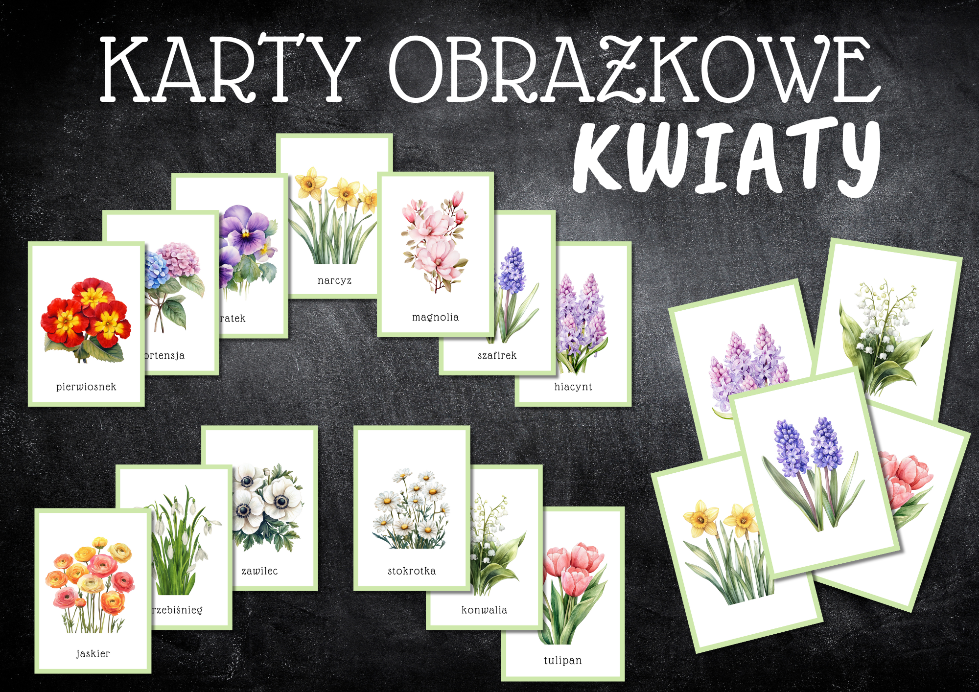 - 13 stron z kwiatami z podpisami/nazwami