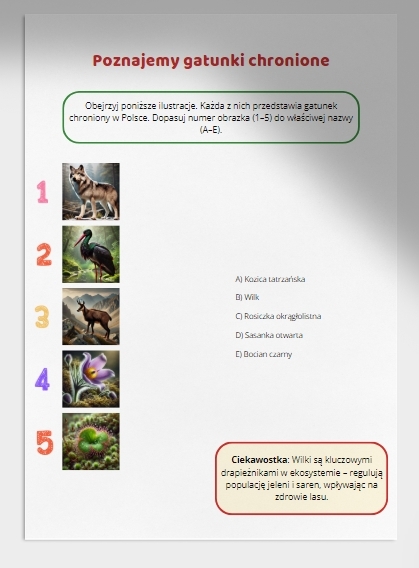 - Przygotowany w formacie A4 (pionowo), gotowy do wydruku lub wyświetlenia na tablicy interaktywnej.