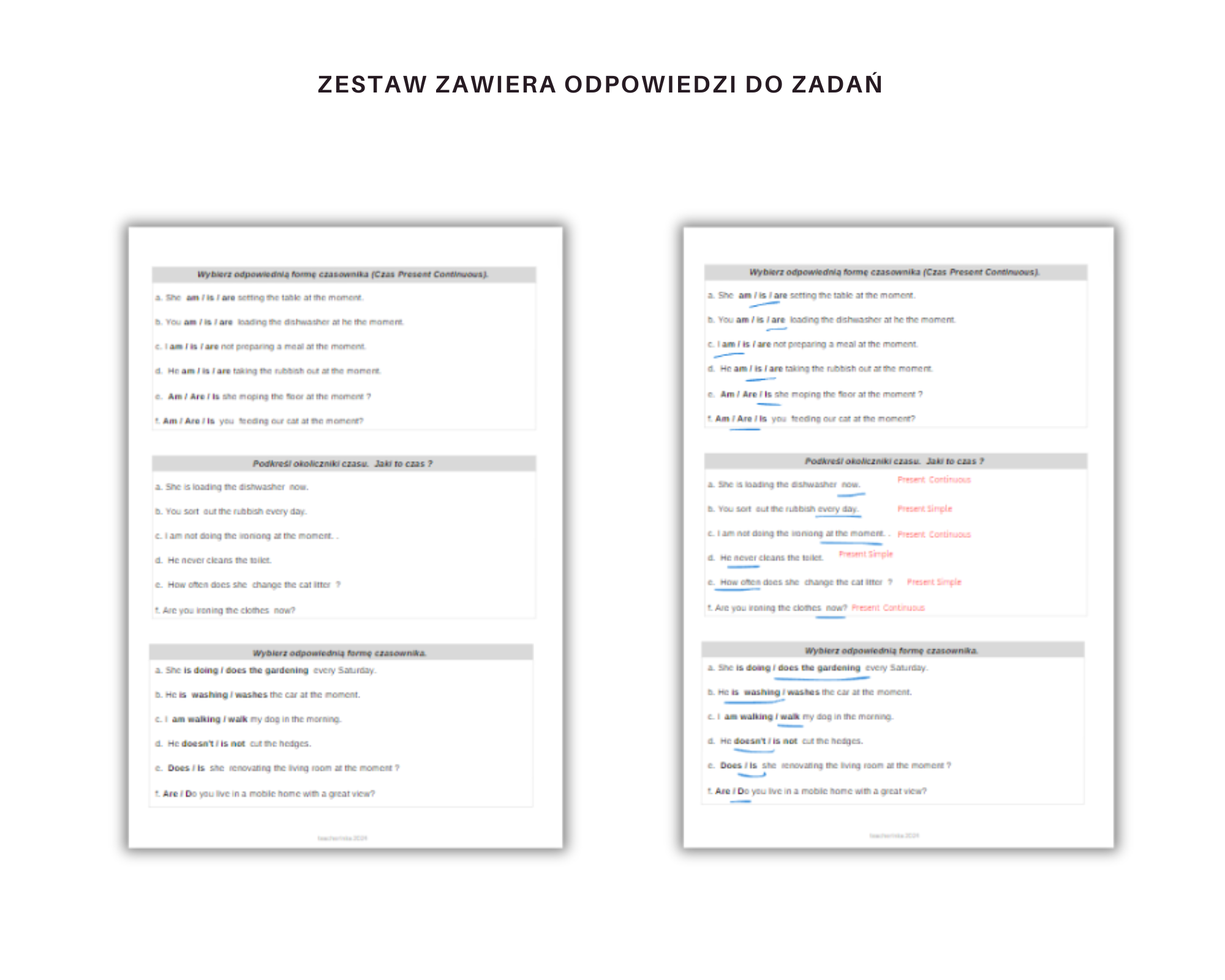 Karty pracy leksykalno-gramatyczne do rozróżniania czasów Present Simple i Continuous