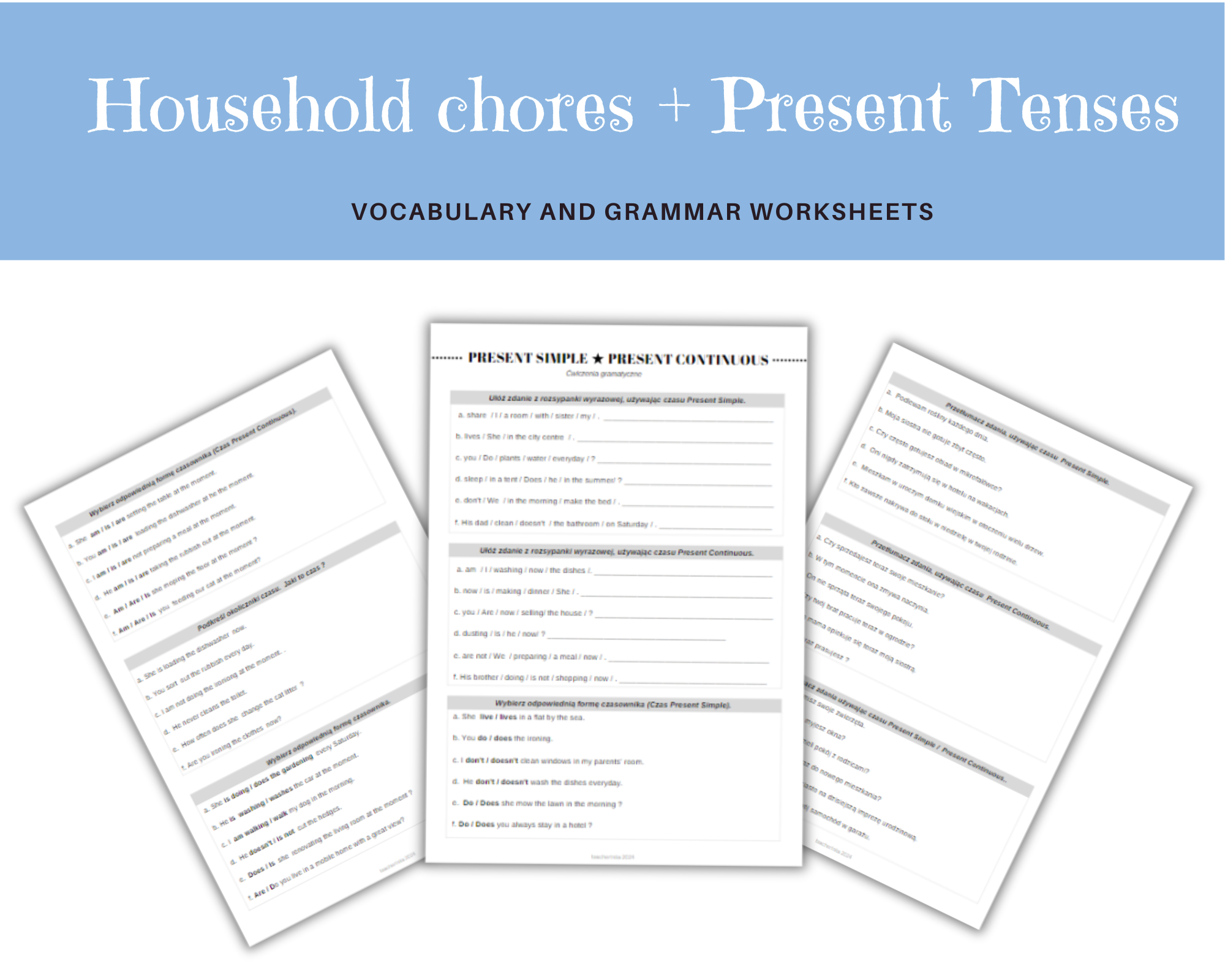 Te karty pracy zostały stworzone z myślą o wprowadzeniu ucznia w zagadnienie czasów Present Simple i Continuous w sposób stopniowy i przystępny.