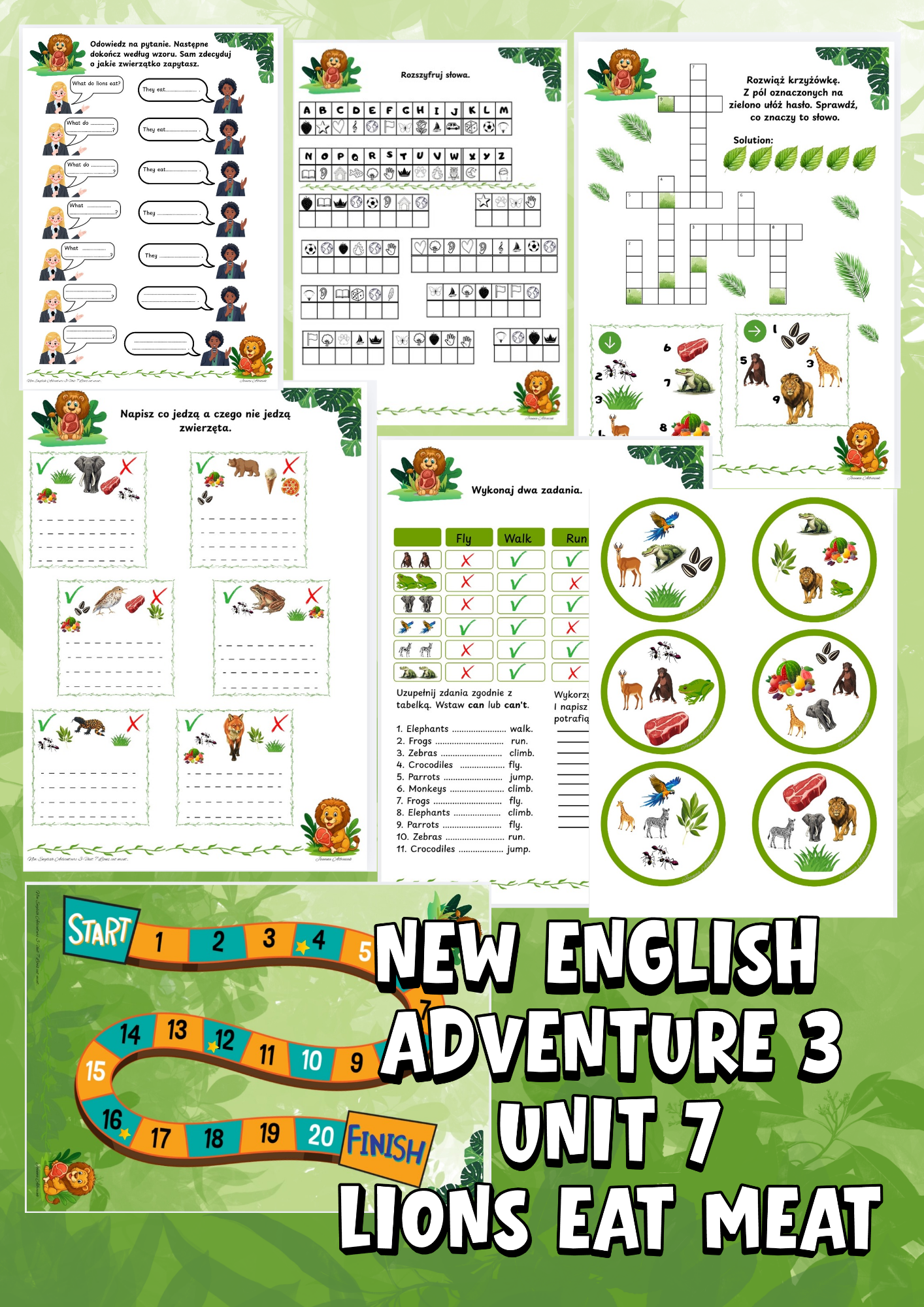 11. Karty z obrazkami oraz nazwami zwierząt i jedzeniem. Dodatkowo karteczki ze słowami np eat/don't eat do ukladania zdan.