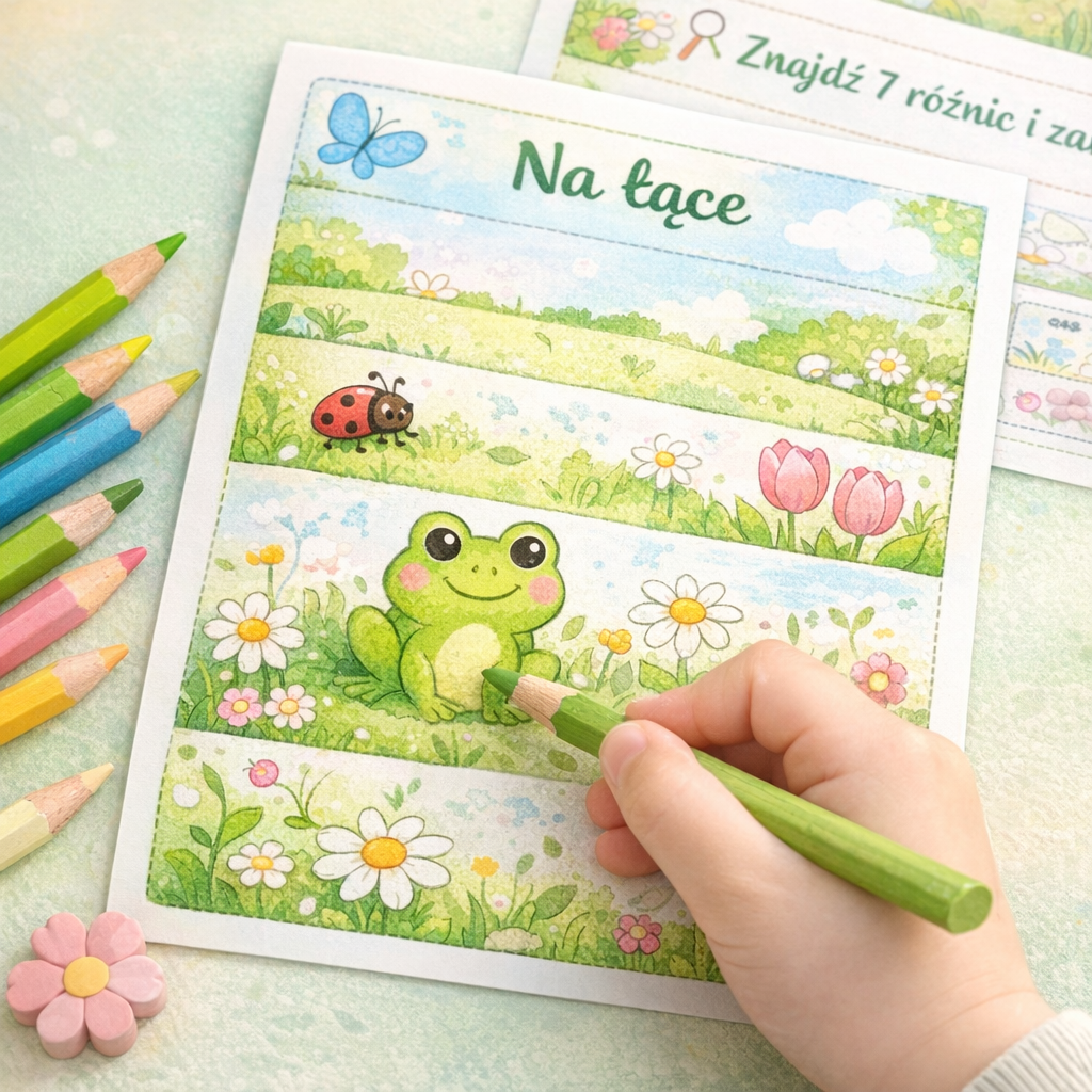 Zadania rozwijają motorykę małą, percepcję wzrokową, logiczne myślenie i spostrzegawczość – idealne dla przedszkolaków i uczniów klas 0–1.