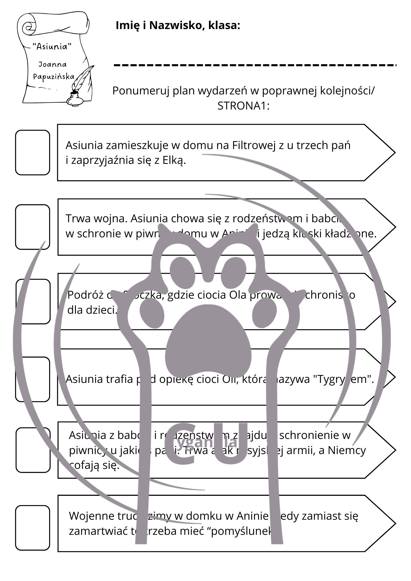 Jeżeli szukasz angażujących i kreatywnych materiałów do pracy z lekturą „Asiunia” Joanny Papuzińskiej to ten zestaw kart pracy może być dobrym rozwiązaniem na uatrakcyjnienie Twojej lekcji oraz dobrą bazą w jej sprawnym i rzetelnym przeprowadzeniu. Karty stworzone z myślą o uczniach, pomogą im lepiej zrozumieć i zapamiętać treść książki Joanny Papuzińskiej, jednocześnie rozwijając ich umiejętności.