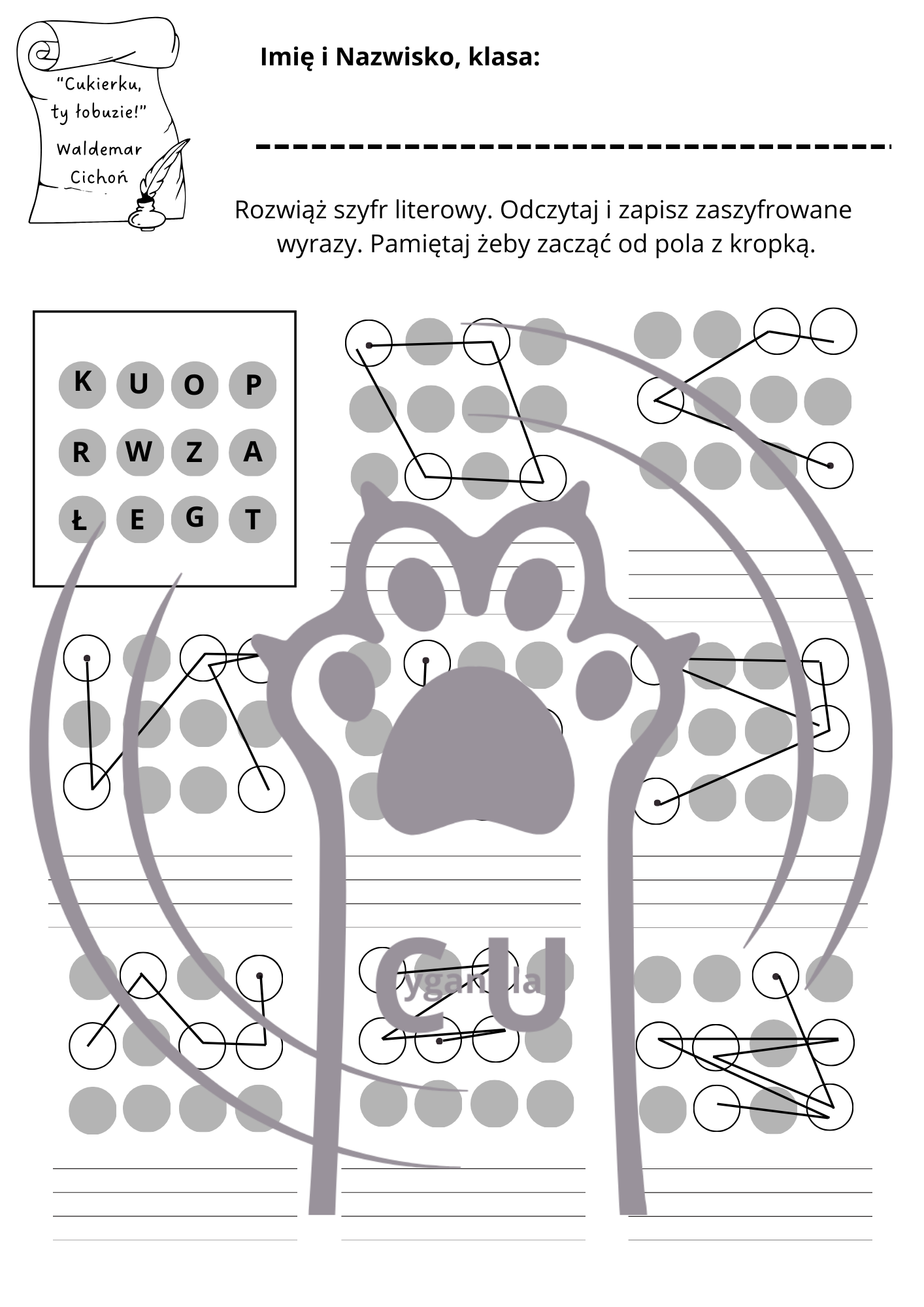 - Rozwija spostrzegawczość i umiejętności językowe poprzez szyfry literowe, chronologię wydarzeń, wykreślankę, uzupełnianie luk oraz układanie zdań.