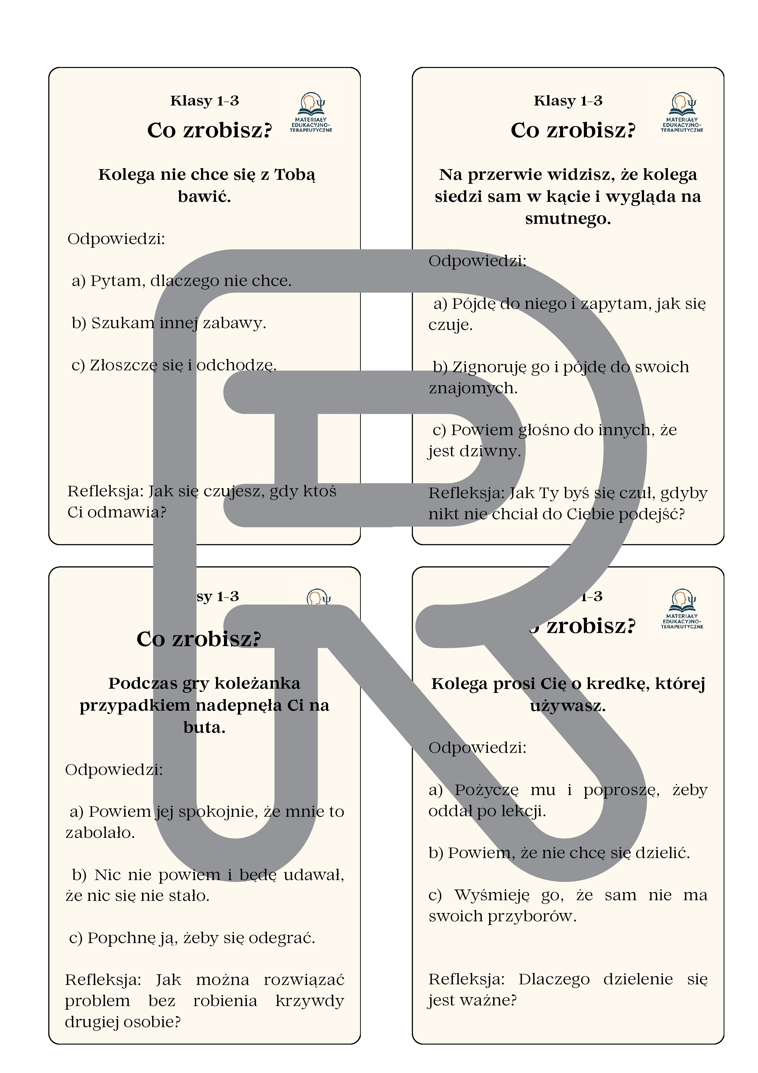 „Co zrobisz?” – Karty sytuacyjne dla uczniów klas 1–3