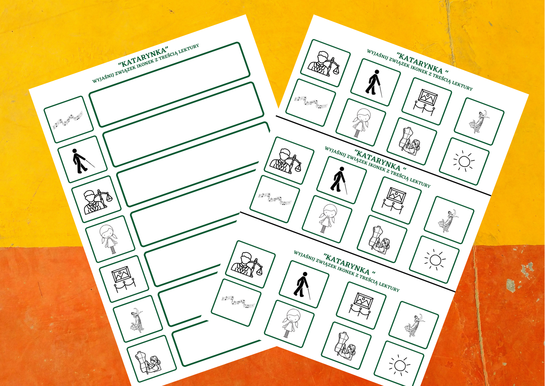 Zestaw składa się z karty pracy oraz karty z 3 wklejkami (obie karty pdf w formacie A4 oraz png), które zawierają ikonki dotyczące treści lektury.