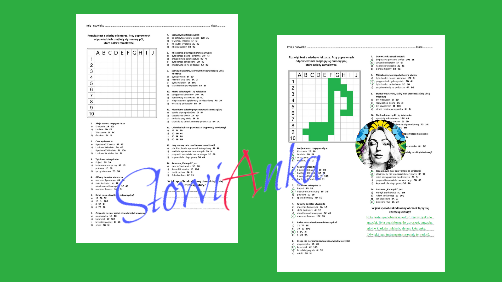 Oferuję kodowaną kartkówkę z treści noweli autorstwa Bolesława Prusa pt. „Katarynka”. Zadaniem uczniów jest rozwiązanie testu z wiedzy o lekturze. Przy poprawnych odpowiedziach znajdują się numery pól, które należy zamalować na diagramie, by otrzymać kształt związany z treścią noweli. Dlaczego warto skorzystać akurat z kartkówki - kodowanki?