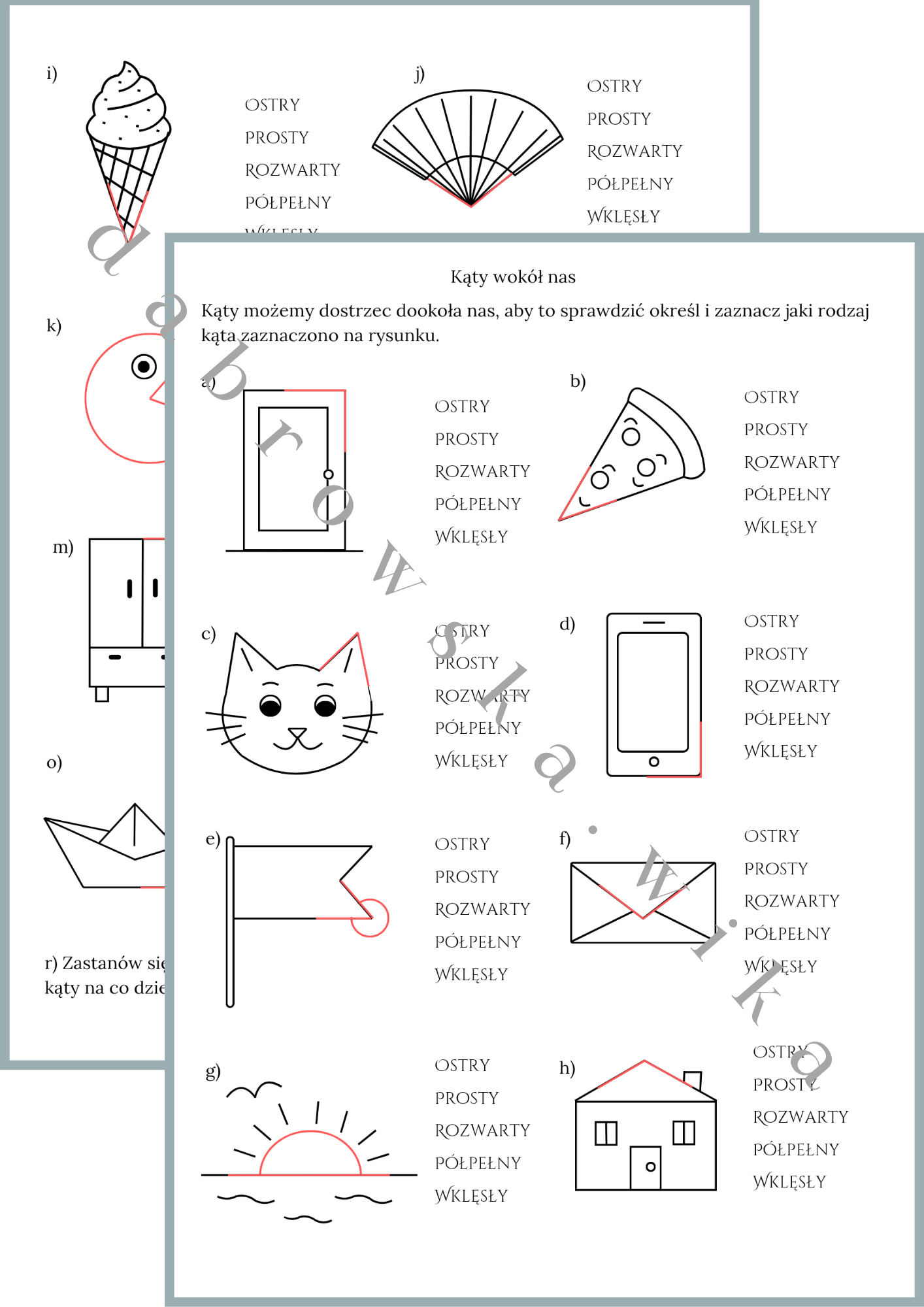 Taka karta pracy świetnie wprowadzi w świat geometrii i w przyjemny oraz praktyczny sposób przybliży uczniom temat kątów i ich rozpoznawanie w swoim otoczeniu.