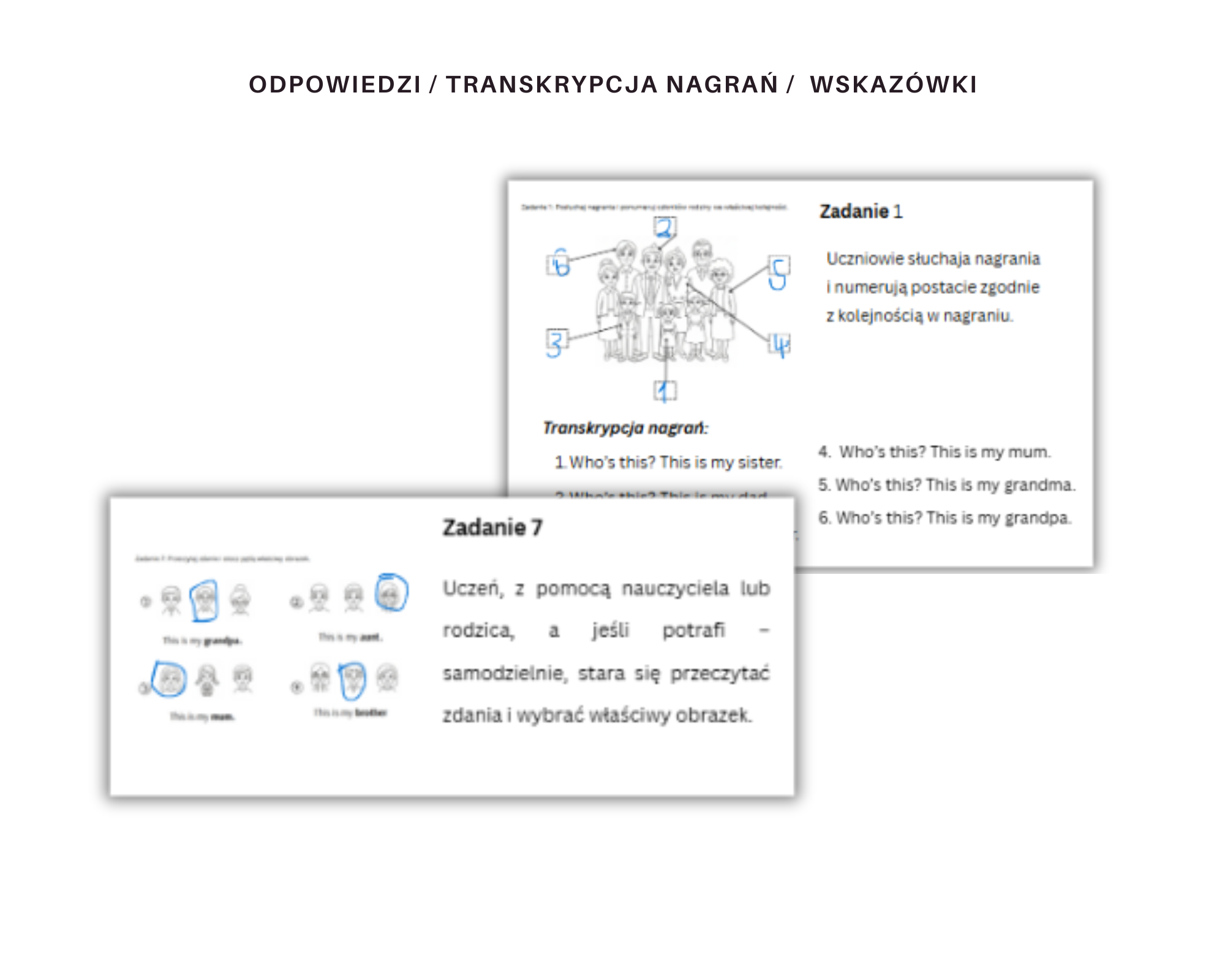 Odpowiedzi do zadań, transkrypcje nagrań oraz – przy wybranych ćwiczeniach – szczegółowe instrukcje wykonania.