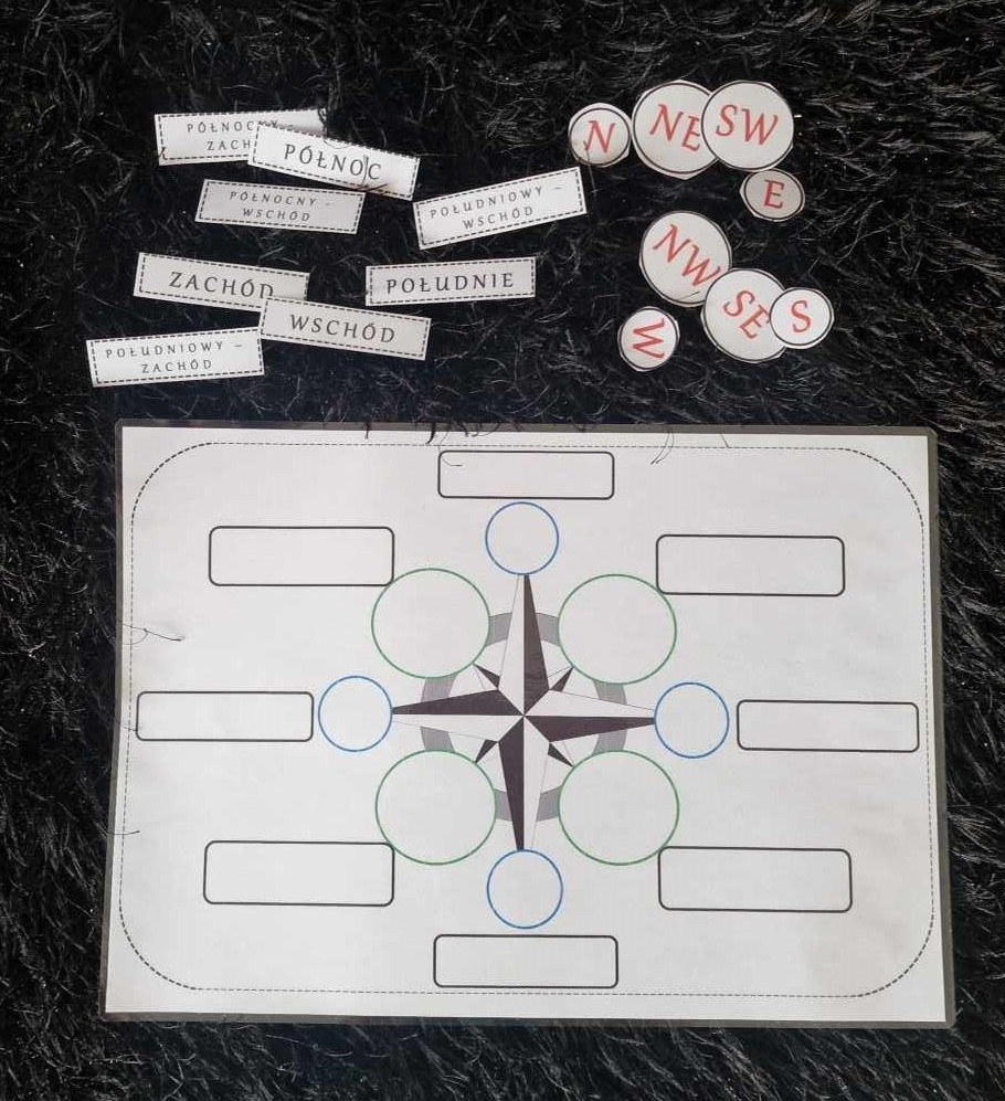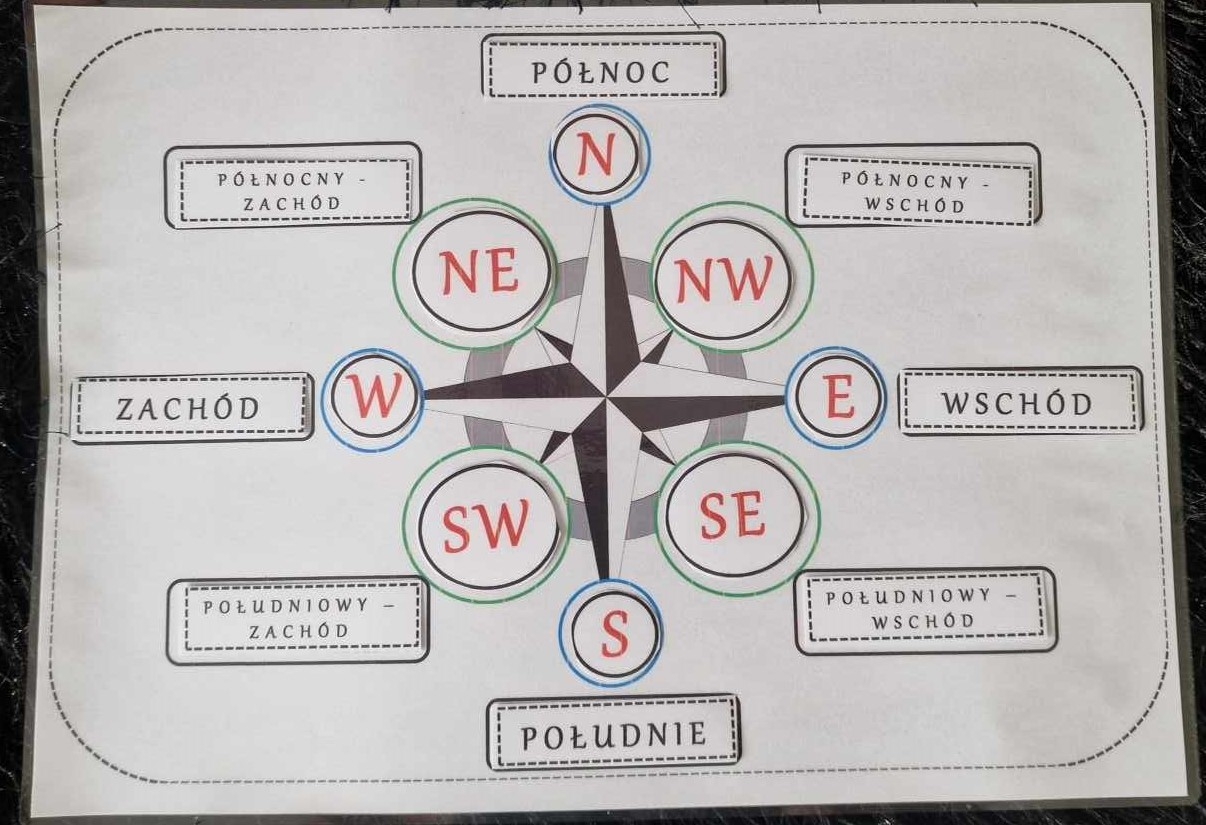 Kierunki geograficzne do zalaminowana/układanka w pdf. "Kierunki geograficzna". Przyroda 4. Geografia 5.