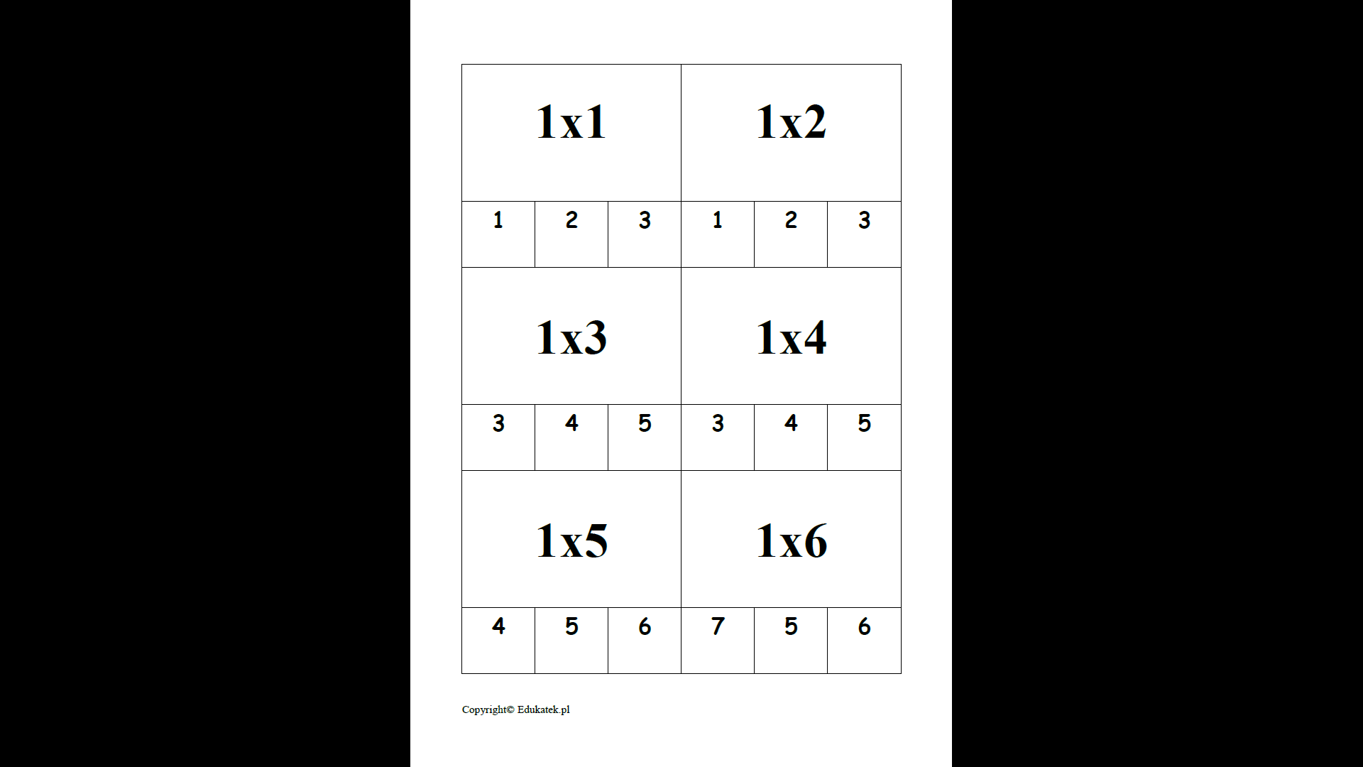 W skład zestawu wchodzi 136 kart do samodzielnego wydrukowania. Każda karta zawiera działanie dotyczące mnożenia lub dzielenia w zakresie 100. Jest 100 kart dotyczących mnożenia oraz 36 kart utrwalających dzielenie.