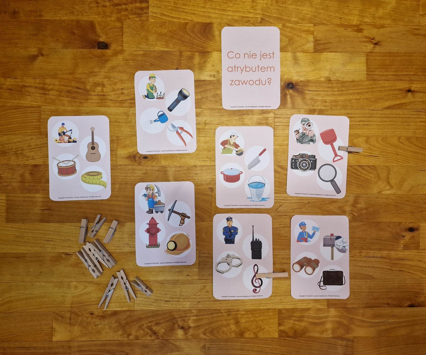 Klamerkowe pomoce - Co nie jest atrybutem zawodu? Karty obrazkowe