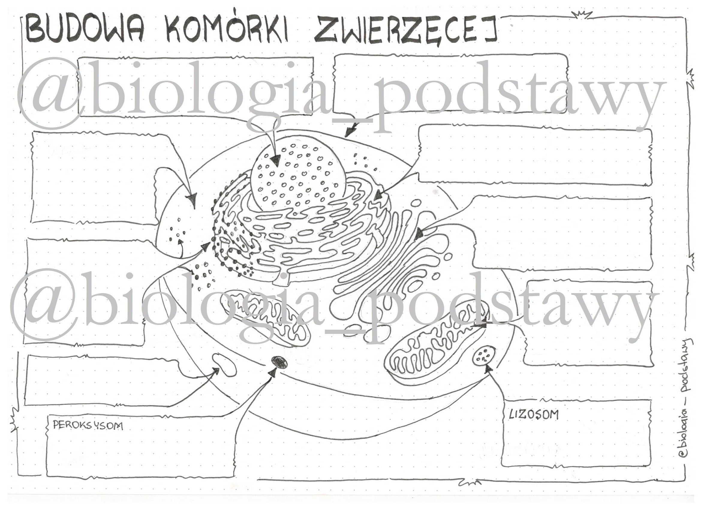 Budowa komórki zwierzęcej - sketchnotka jako gotowa notatka z lekcji w formie KP do uzupełnienia.