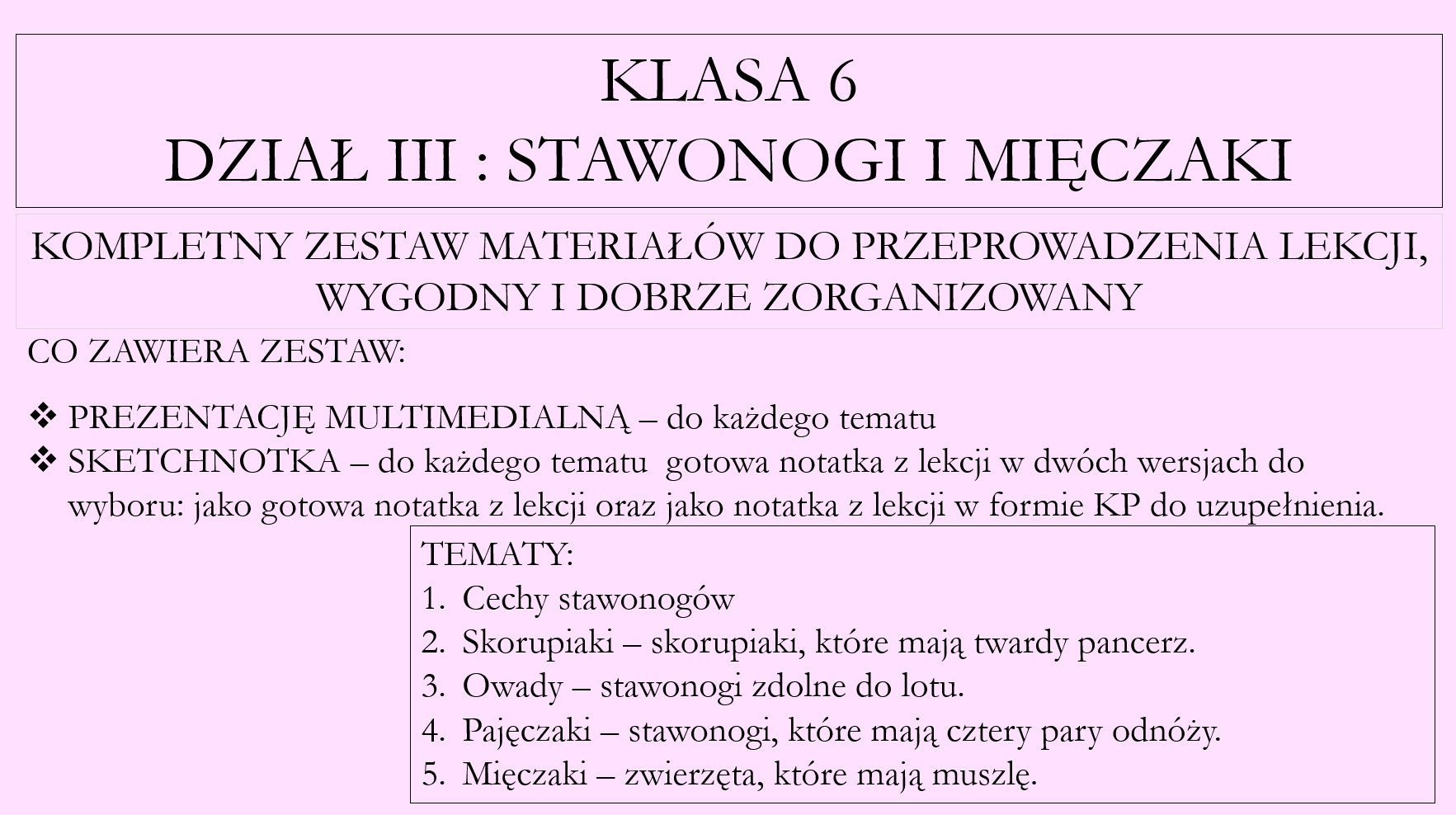 Pakiet materiałów do klasy 6 rozdział III -Stawonogi i mięczaki