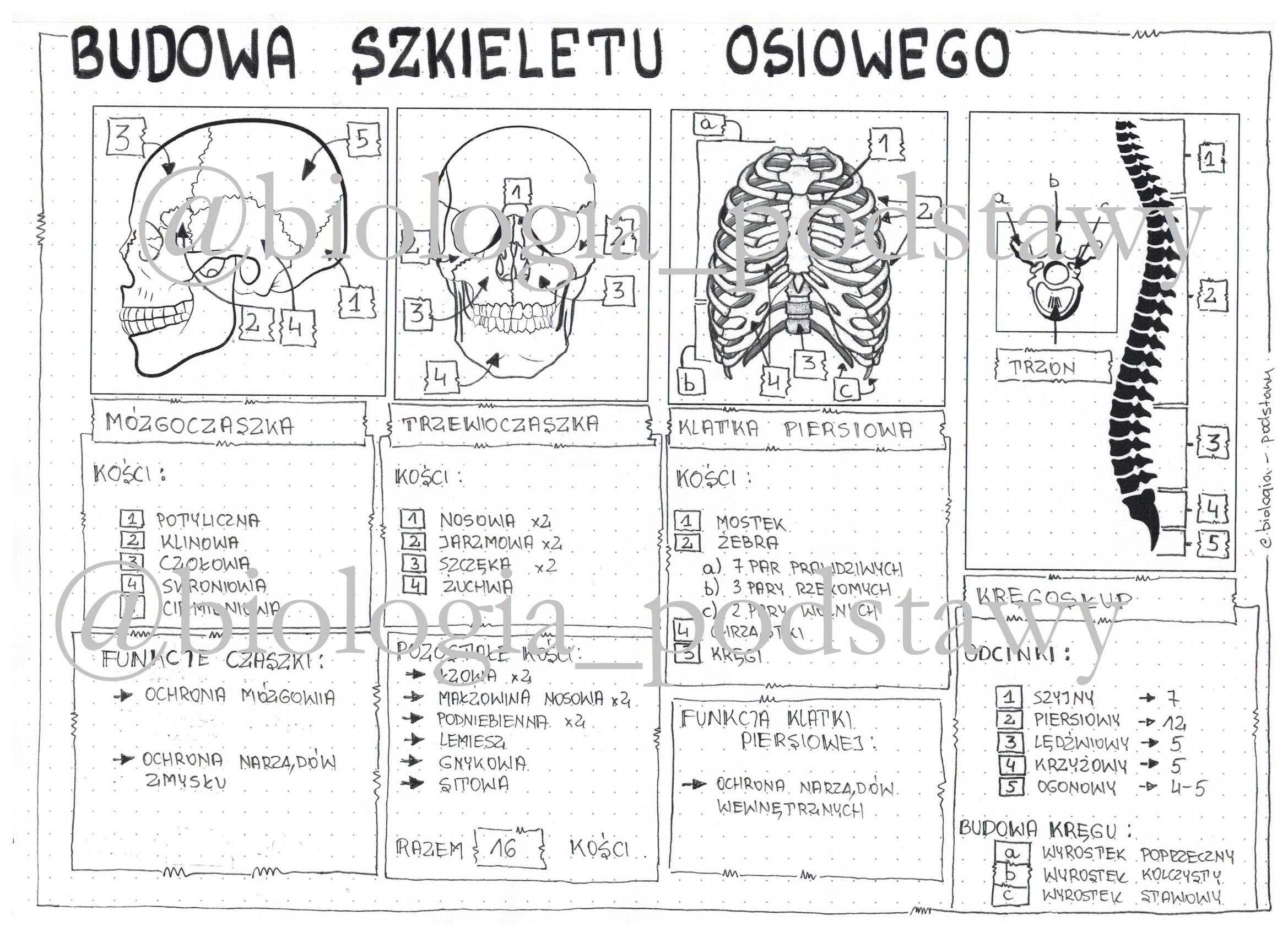 Sketchnotka "Budowa szkieletu osiowego" jako gotowa notatka z lekcji.