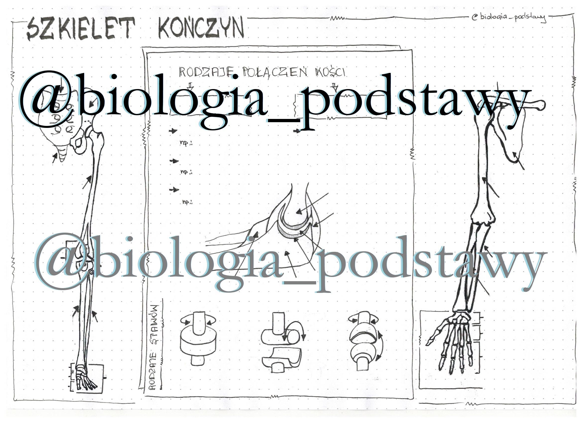 Sketchnotka "Szkielet kończyn i ich obręczy" jako gotowa notatka z lekcji w formie KP do uzupełnienia