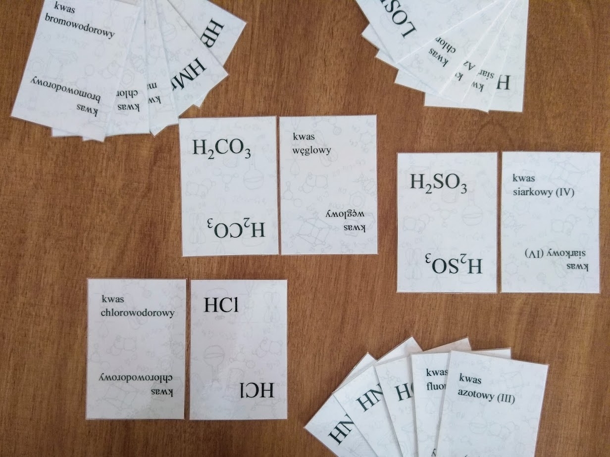 ✅ 13 kart kwasów (wzór sumaryczny + nazwa) i jedną kartę LOOSER,