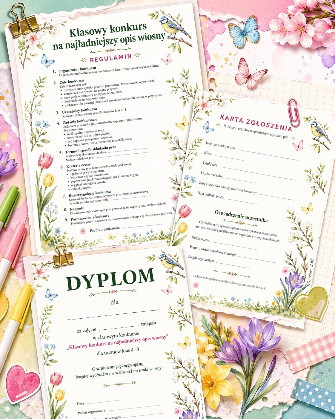 #KonkursSzkolny #OpisWiosny #Wiosna #JęzykPolski #Klasy4_8 #KonkursKlasowy #TwórczePisanie #SzkołaPodstawowa #WiosenneInspiracje #Uczniowie #NaukaPrzezZabawę 🌷📚✨