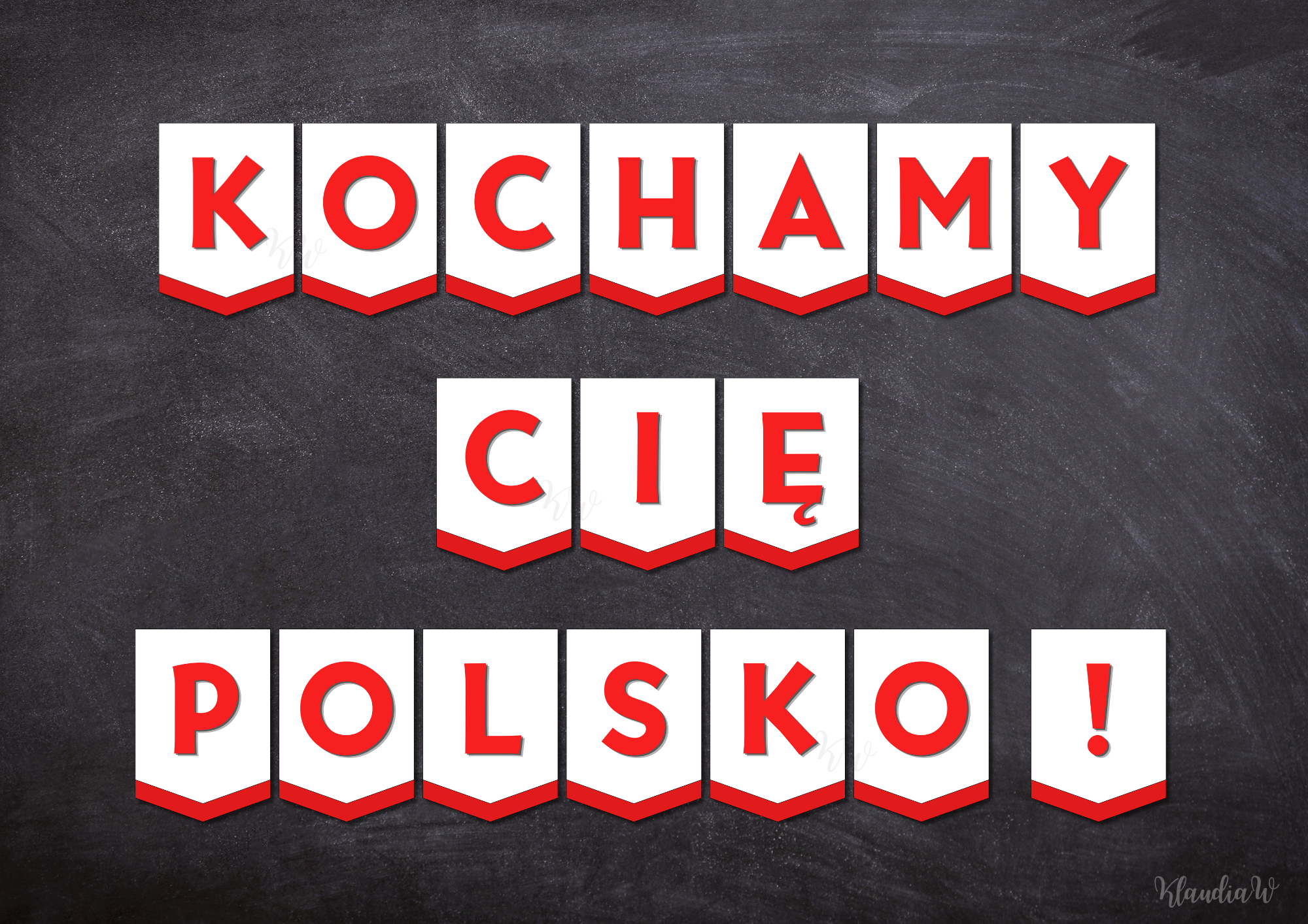 Gotowa do druku girlanda z napisem: „KOCHAMY CIĘ POLSKO!”