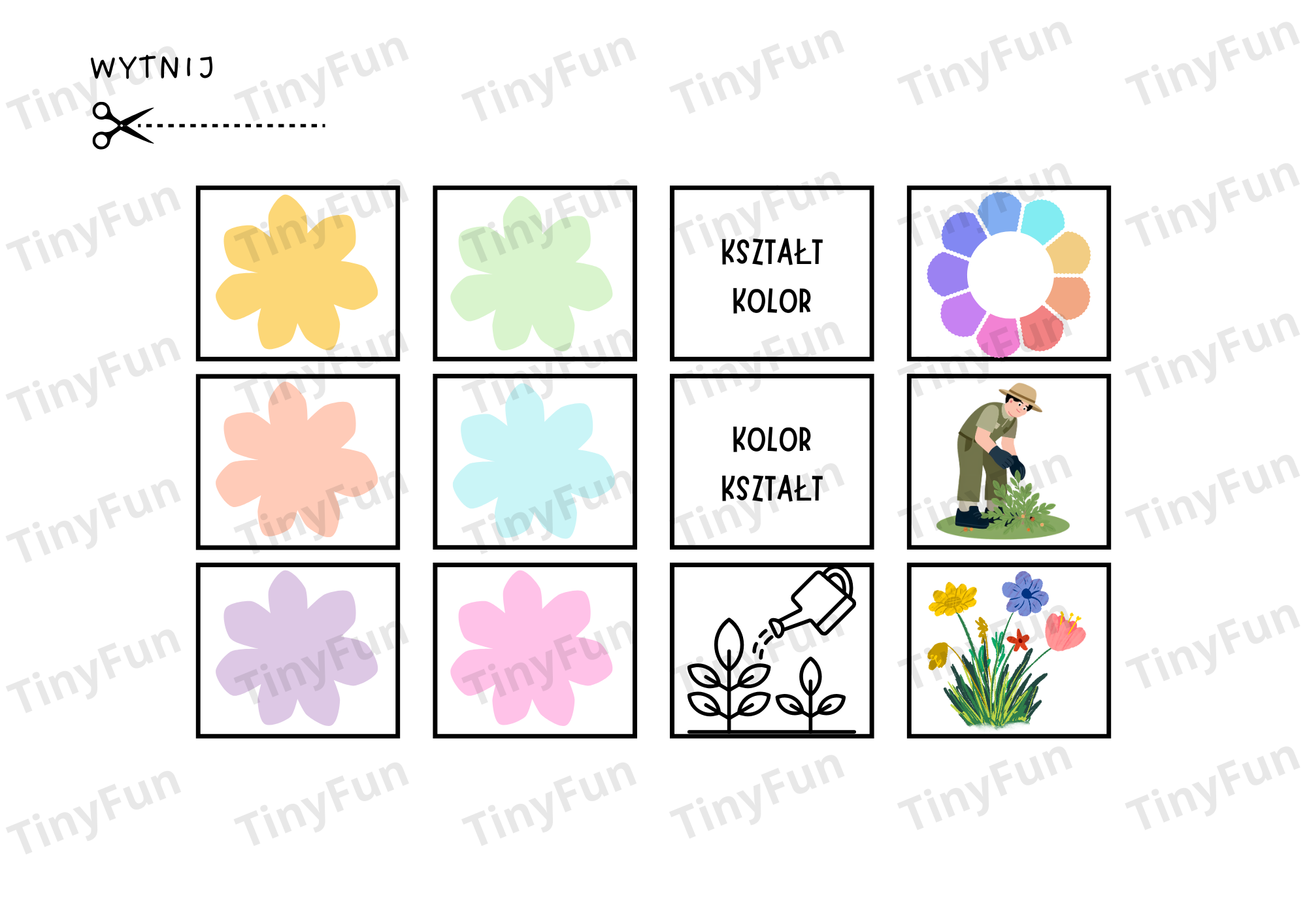 Dzięki możliwości wielokrotnego drukowania kart możesz stopniowo zwiększać poziom trudności i dostosować materiał do wieku oraz umiejętności dzieci.