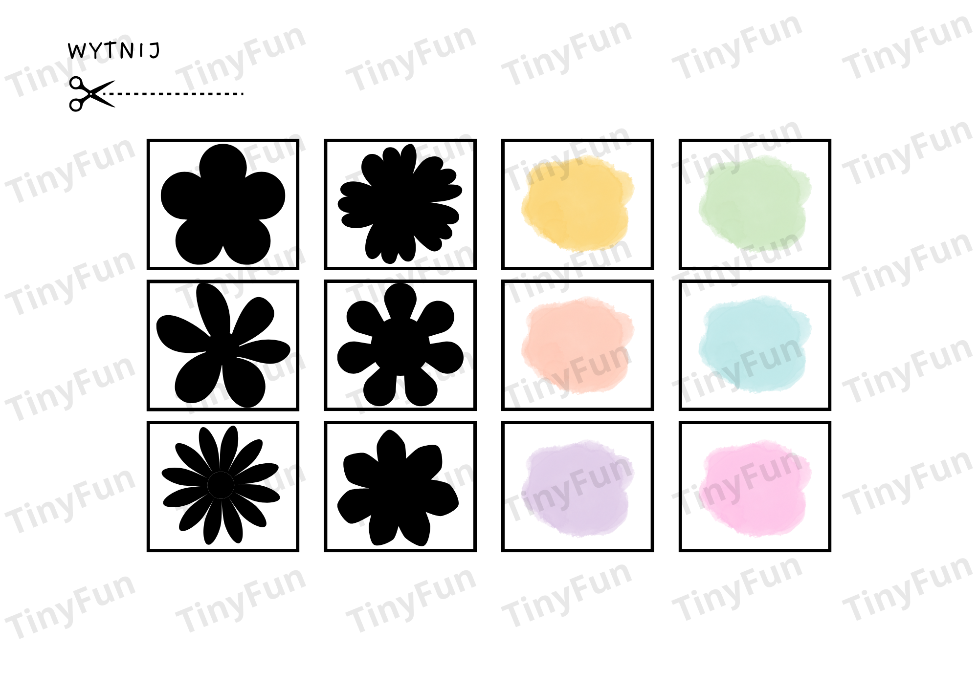 ✔️ 42 karty z kwiatkami (różne kombinacje kolorów i kształtów)
