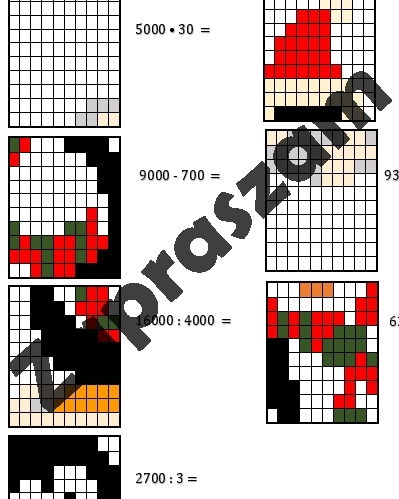 Zadaniem uczniów jest kodowanie. Otrzymany wynik należy odnaleźć w przygotowanej przeze mnie kratownicy, a następnie pomalować to pole według schematu znajdującego się przy działaniu. Poprawne wykonanie całego zadania odkryje tajemniczy rysunek. Zestaw zawiera: * kartę pracy * rozwiązanie
