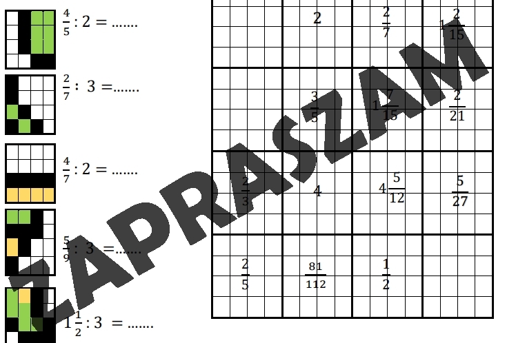 Kodowanie - dzielenie ułamków przez liczby naturalne Zestaw zawiera kartę pracy + rozwiązanie :)