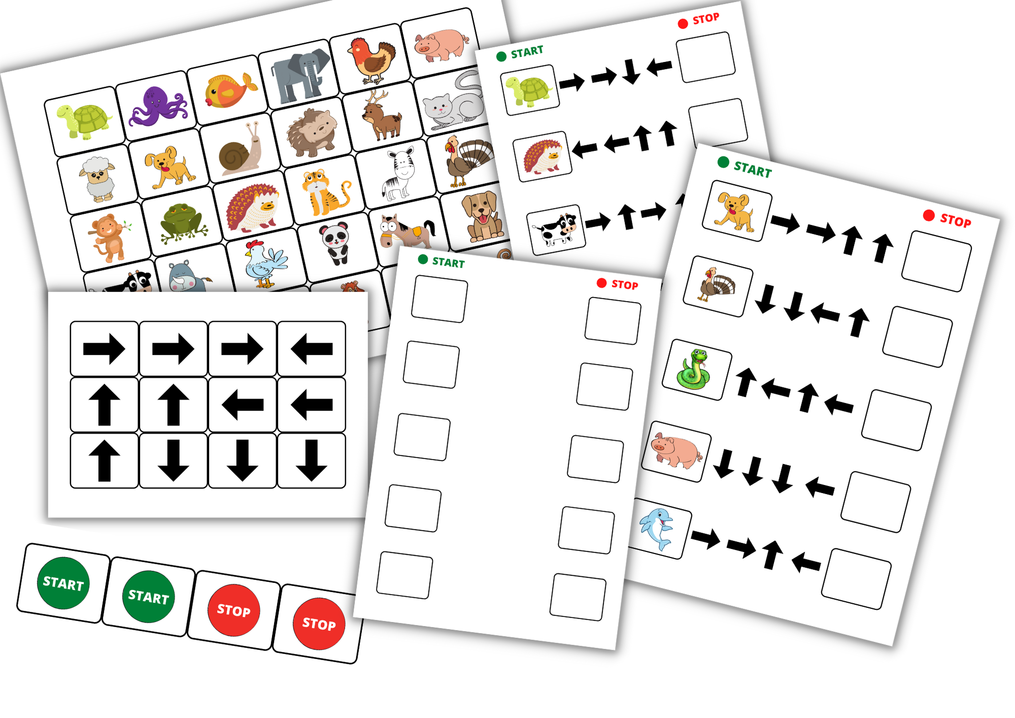 Kodowanie dla uczniów. Ćwiczymy w ten sposób spostrzegawczość i logiczne myślenie. Planszę z kodowaniem można wydrukować, wyciąć wszystkie zwierzątka i dzięki dołączonej do zestawu pustej planszy można układać swoje kompozycje. Dodatkowo także mamy zestaw strzałek. Miłej zabawy!