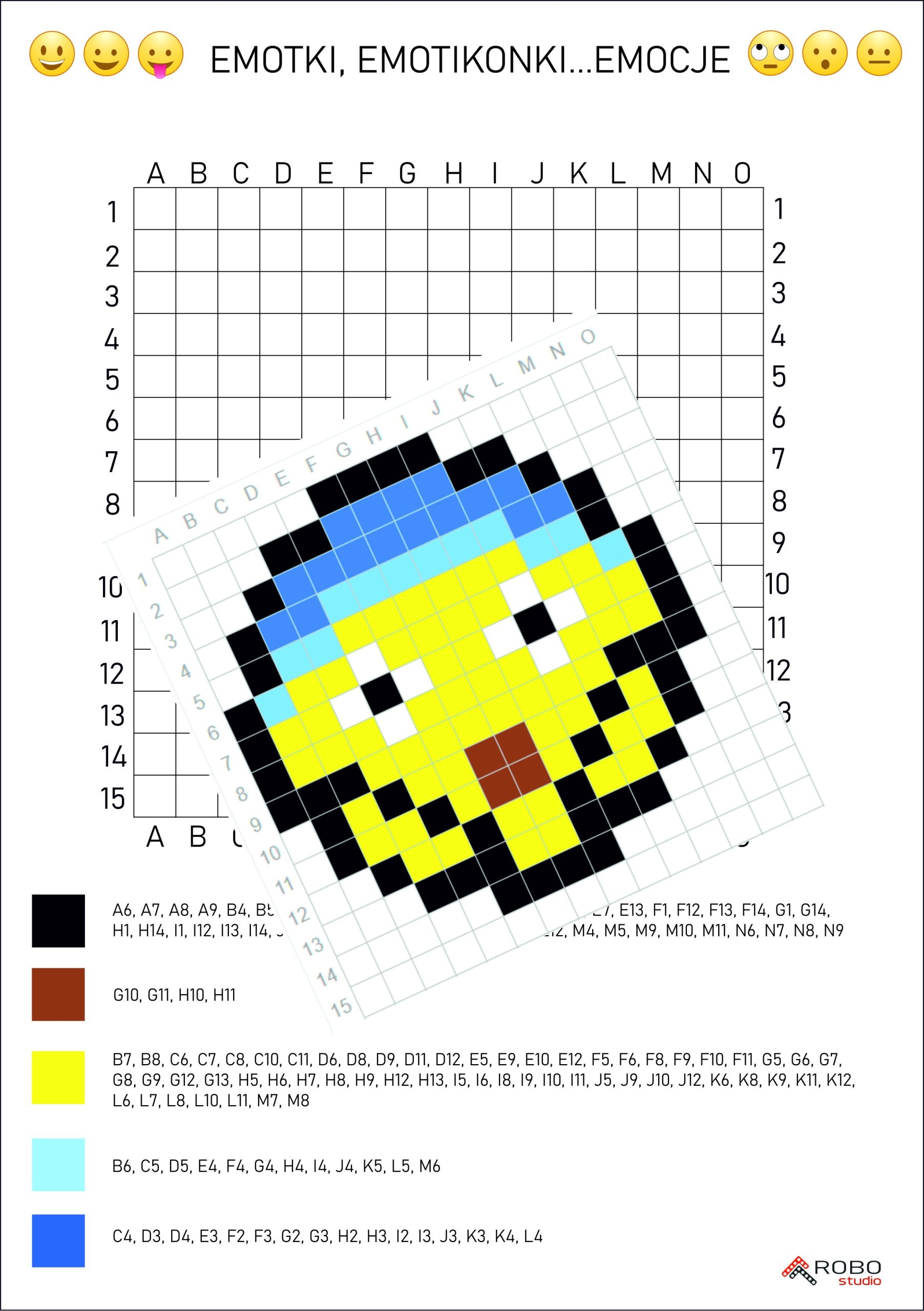 kodowanka EMOTKA, emotikon, emocje, buźka, dyktando graficzne, kodowanie