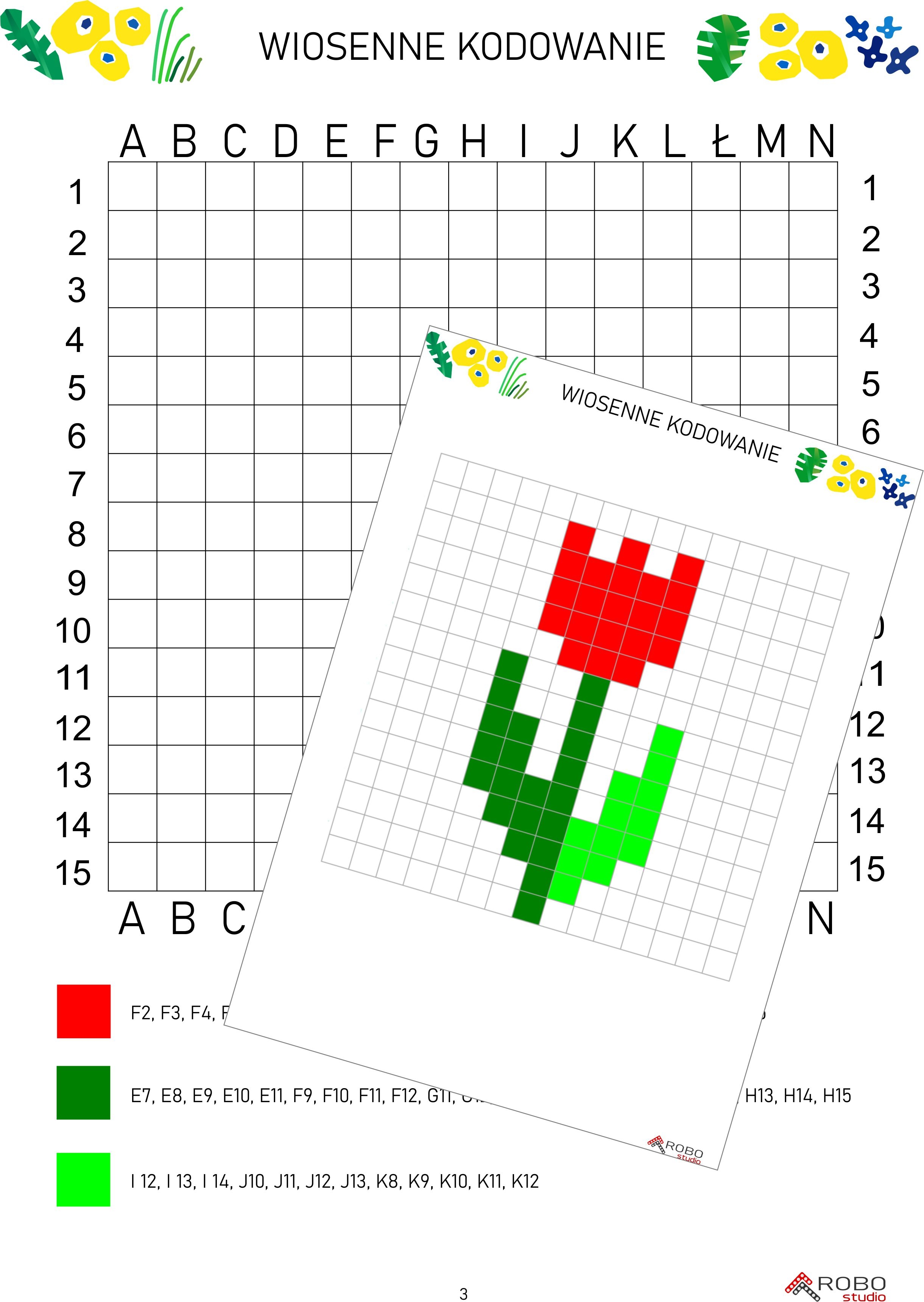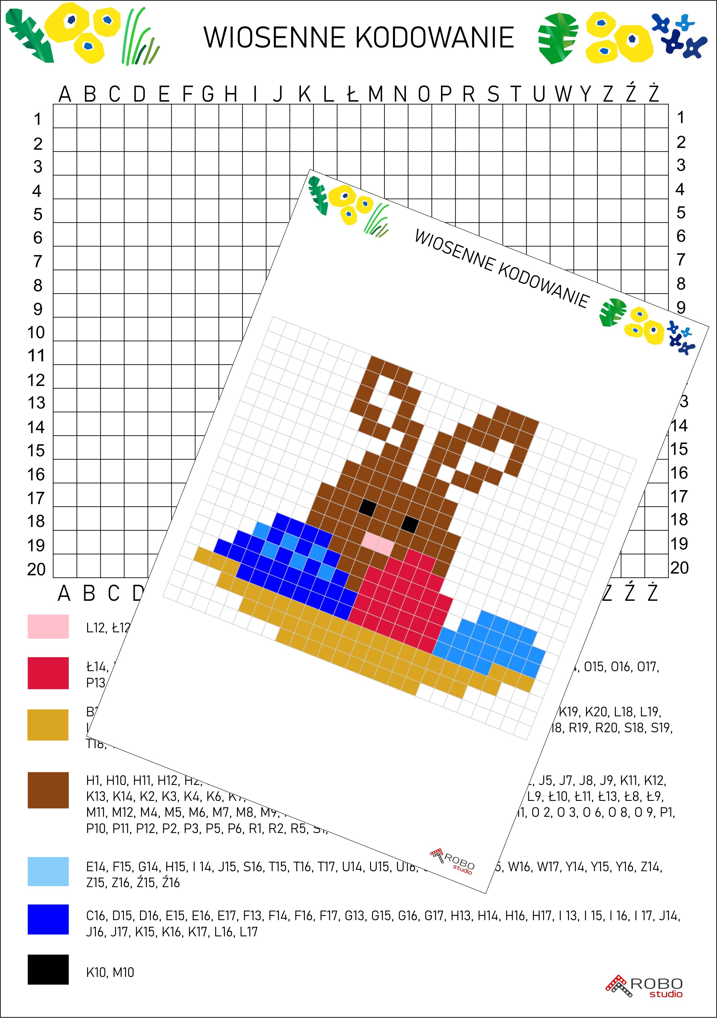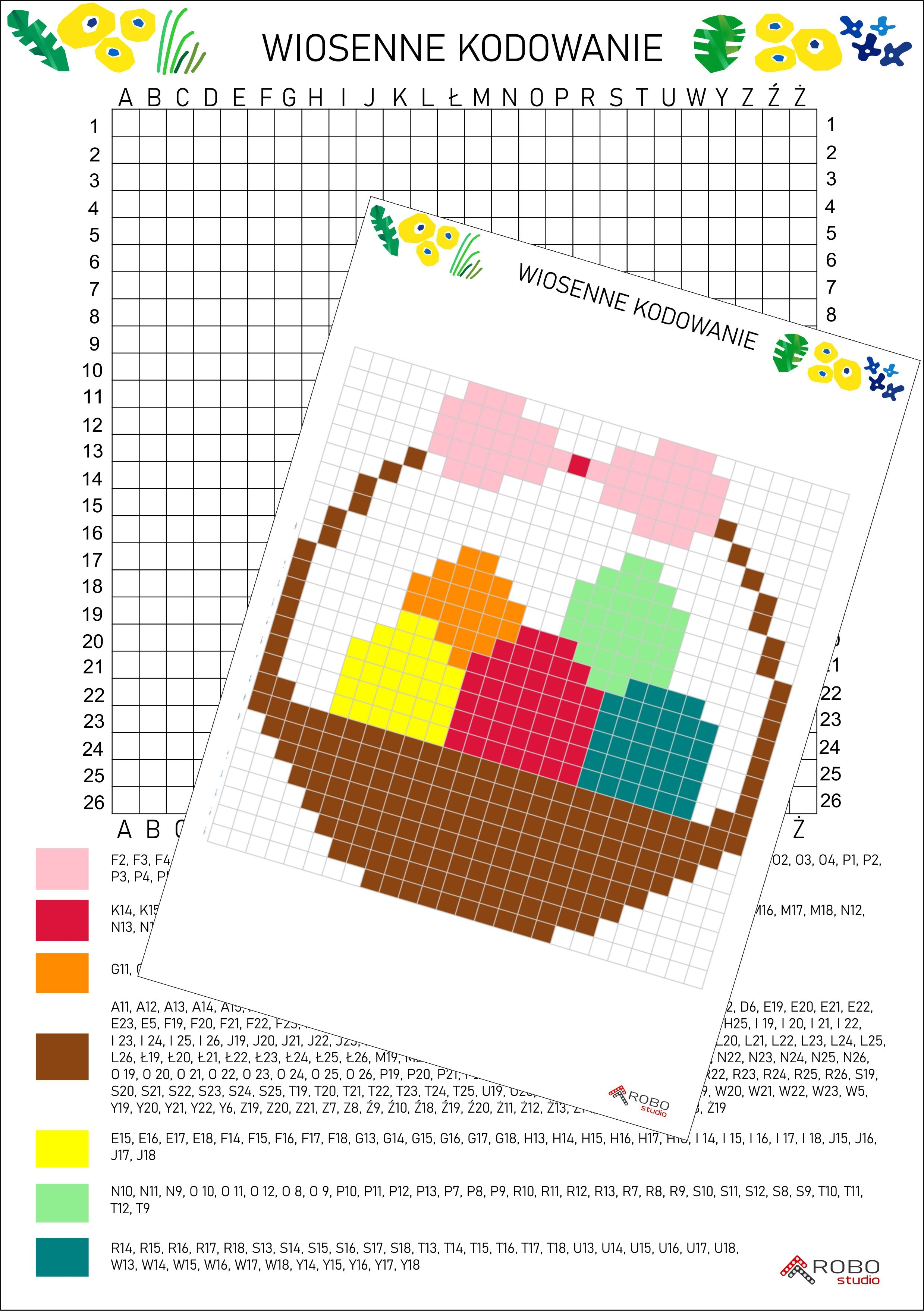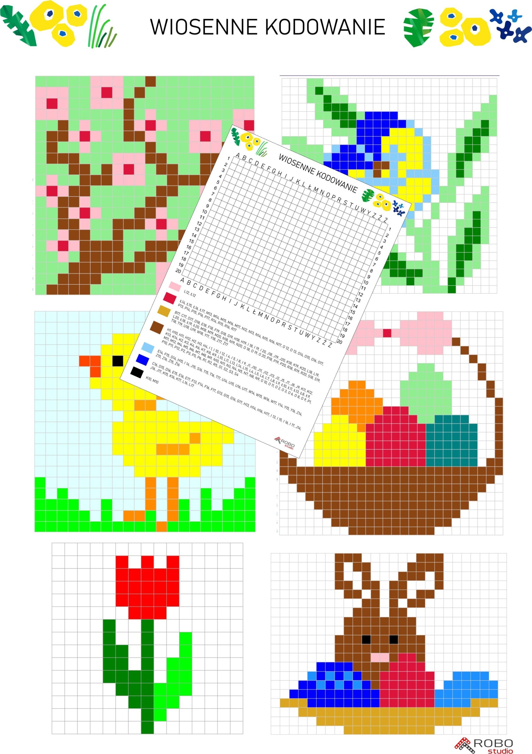Kodowanki wiosenne, świąteczne, wiosna kodowanie, WIELKANOC- zestaw 6 kart pracy