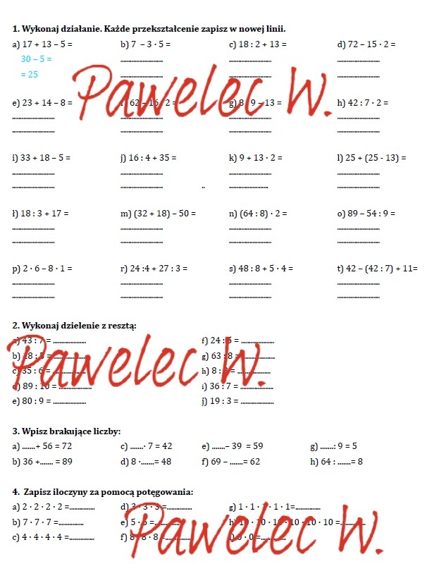 Karta pracy, która w 4 zadaniach ćwiczy: