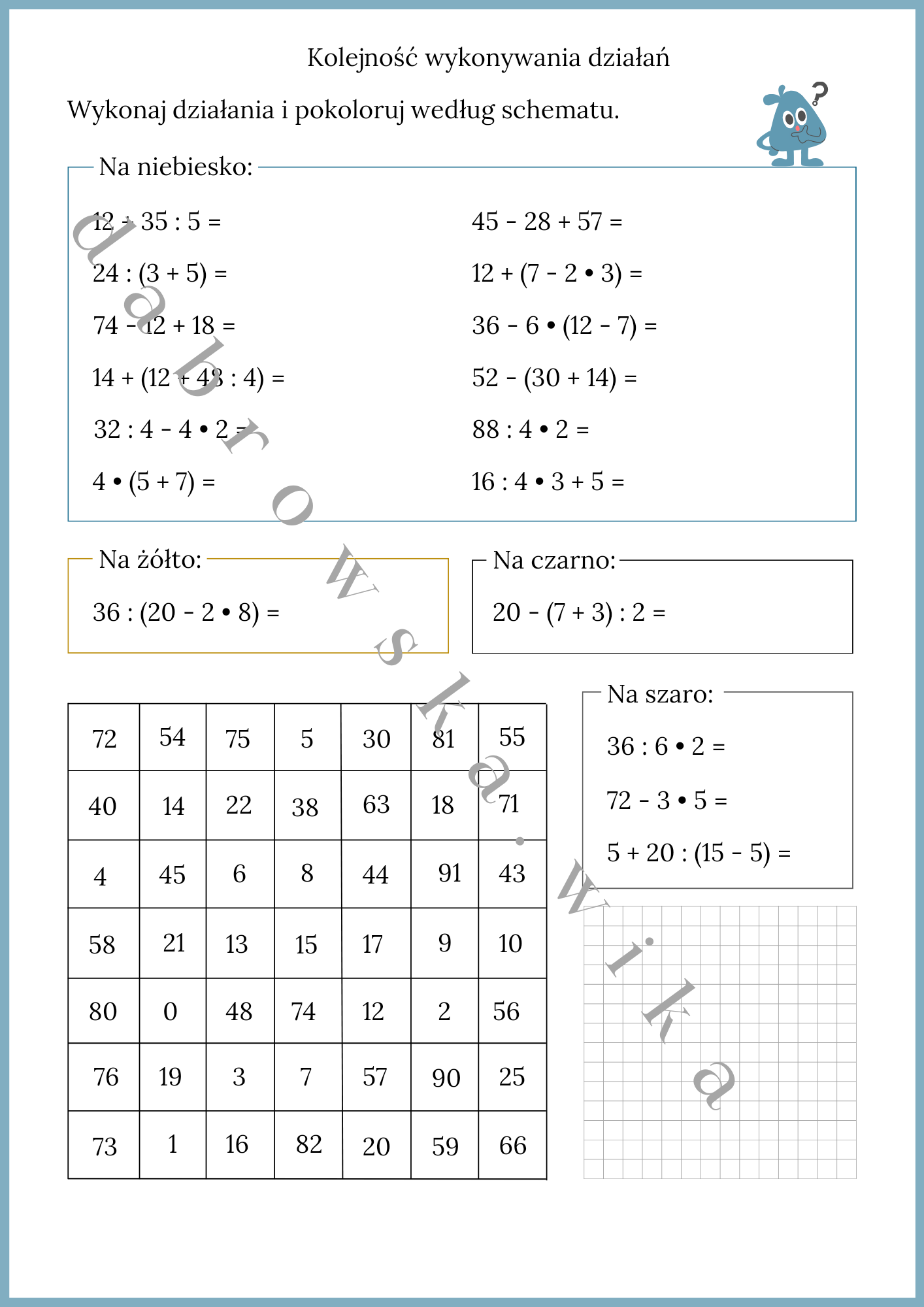 Materiał zawiera kartę pracy dotyczącą kolejności wykonywania działań.